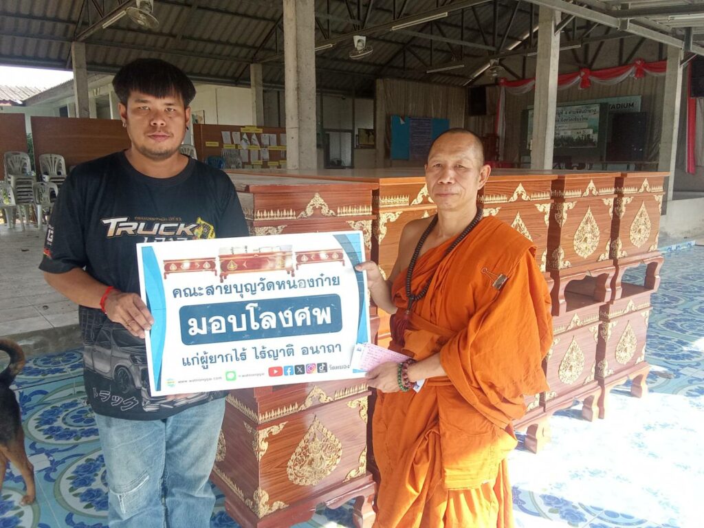 วัดหนองก๋ายมอบโลงศพ 1 โลง ผ้าดิบ 1 ผืน ให้แก่ครอบครัวผู้เสียชีวิต บ้านหนองอาบช้าง อำเภอแม่แตง จังหวัดเชียงใหม่