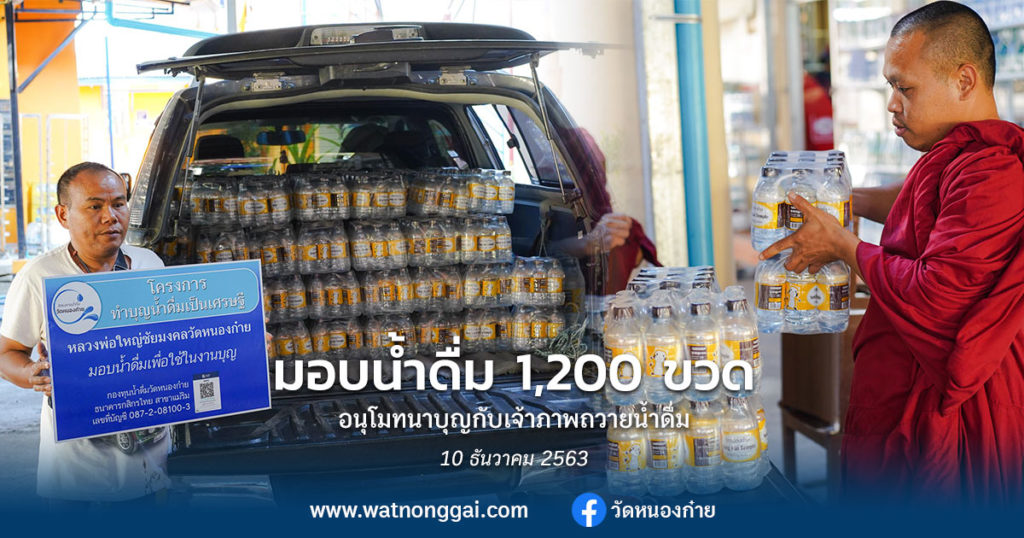 ?วัดหนองก๋ายขออนุโมทนาบุญกับเจ้าภาพทุกท่านที่ได้ร่วมบุญถวายน้ำดื่ม 1,200 ขวดถวายแด่พระนิสิตนักศึกษา มหาวิทยาลัยมหาจุฬาลงกรณราชวิทยาลัย วิทยาเขตเชียงใหม่ ที่จะเข้าร่วมโครงการปฏิบัติธรรมวิปัสสนากัมมัฏฐาน ณ วัดป่าเนรมิต จ.เชียงใหม่