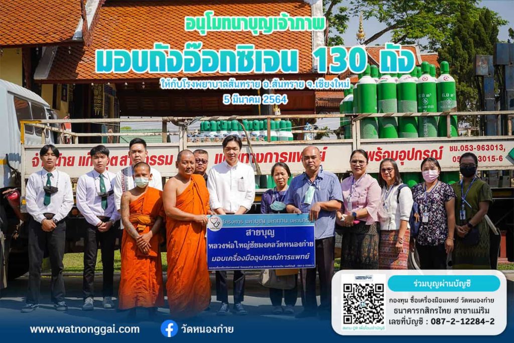 วัดหนองก๋ายขอเป็นสะพานบุญ นำบุญมาให้ถึงทุกท่านที่กำลังสั่งสมบุญอยู่ในขณะนี้ กับการซื้อถังอ๊อกซิเจนมอบให้แก่โรงพยาบาลต่างๆ