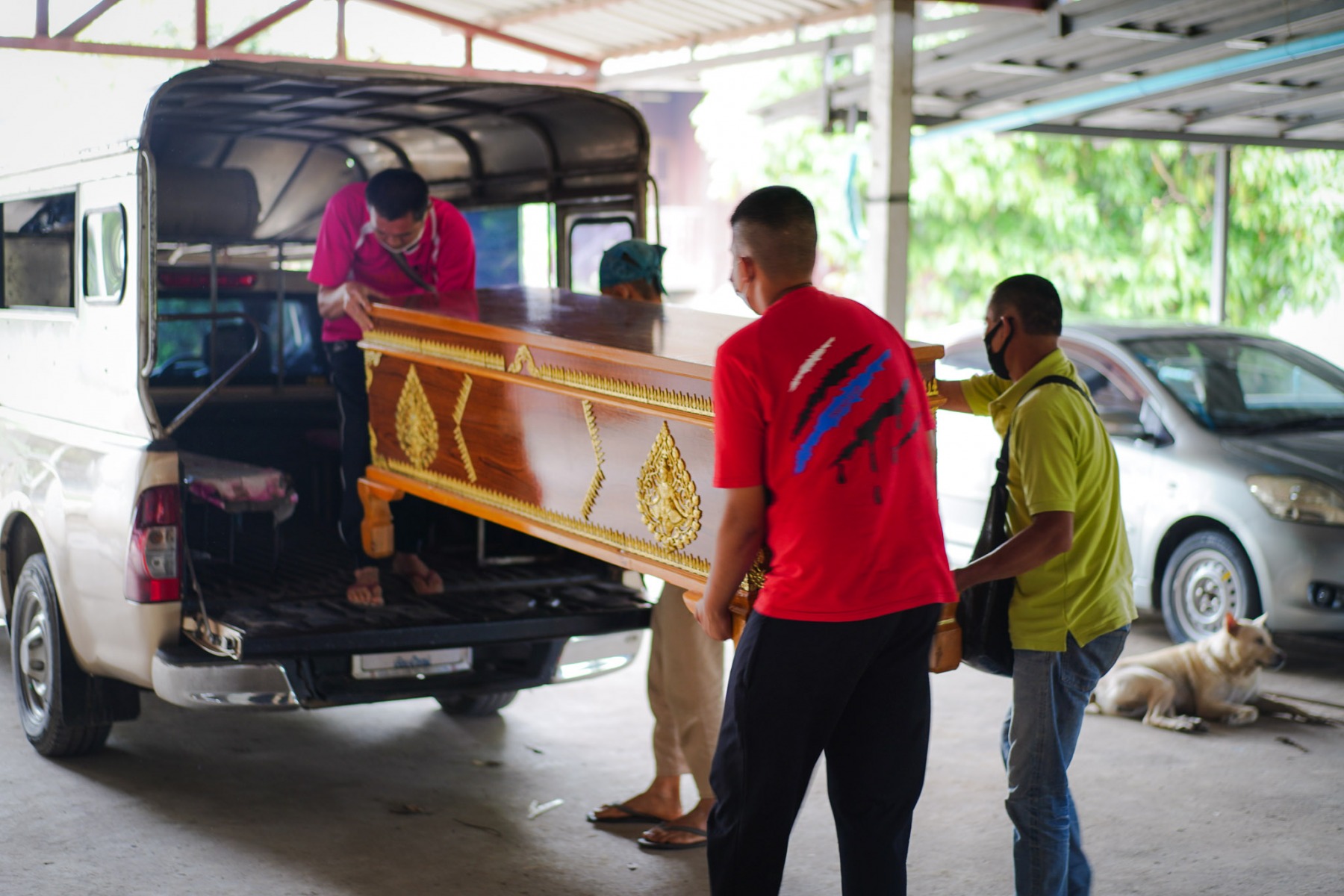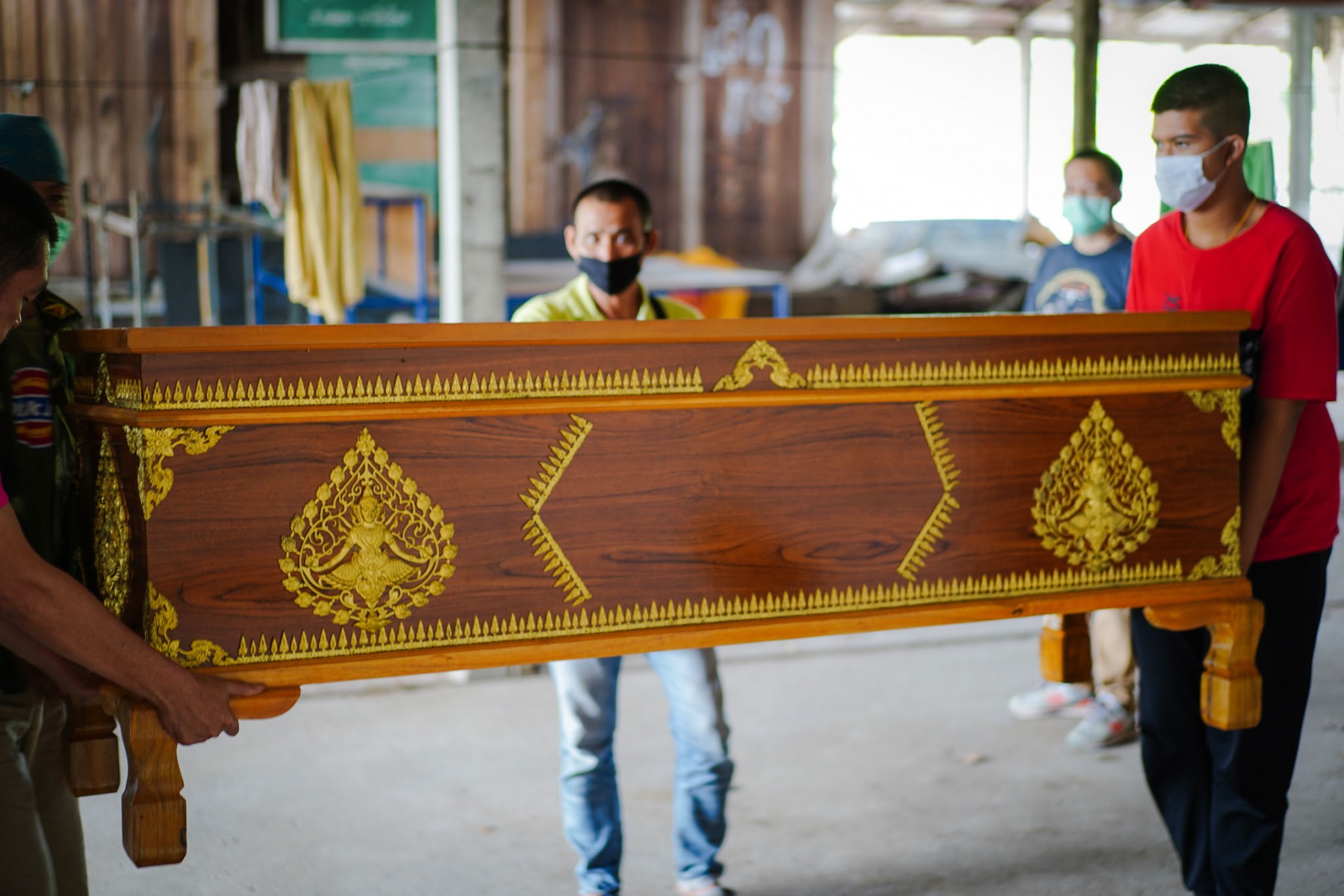 ?โลงศพ 1 โลงราคา 1,990 บาทและร่วมบุญได้ตามกำลังศรัทธาพร้อมกับผ้าขาวดิบ ผืนละ 100 บาท
