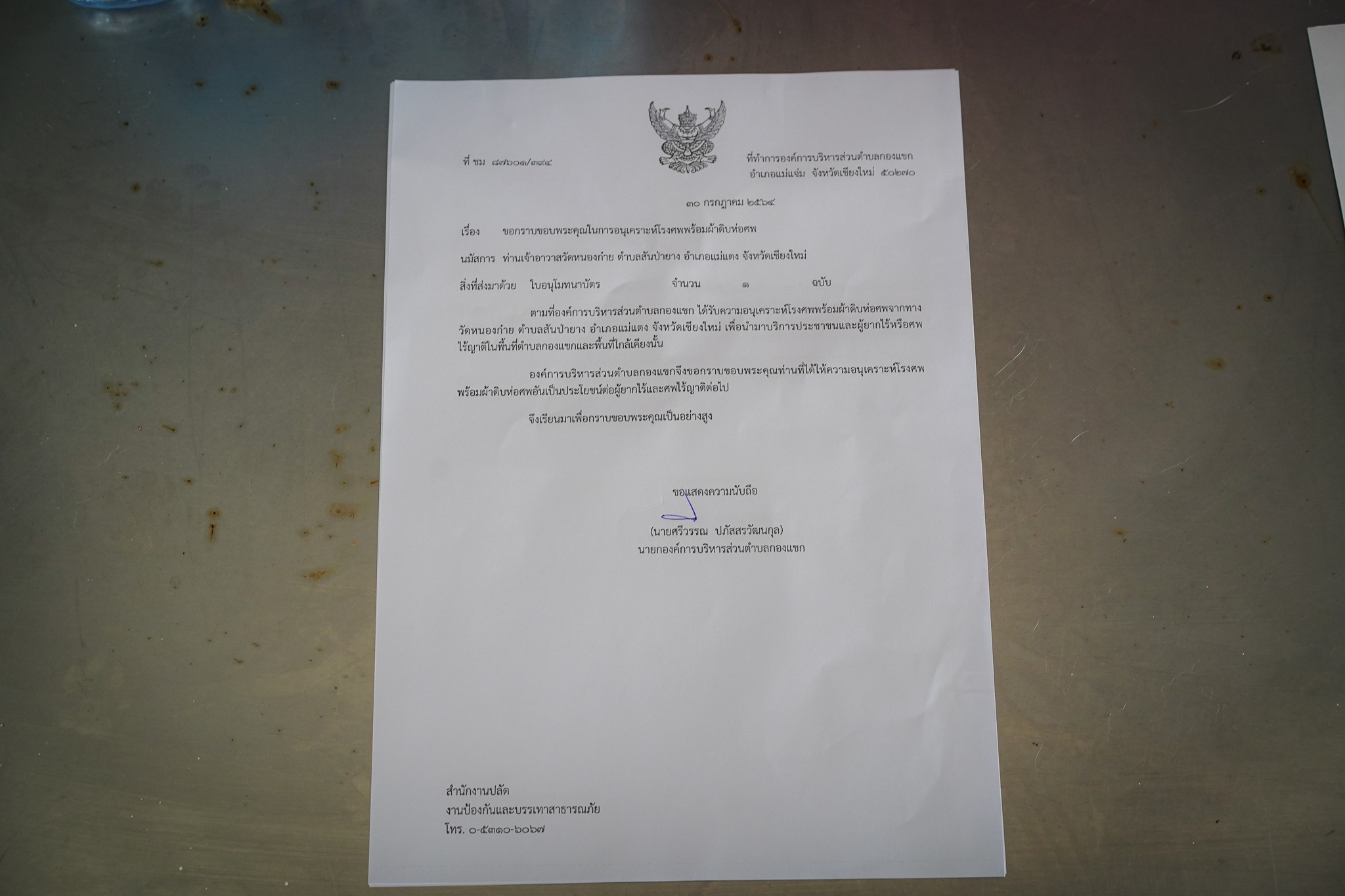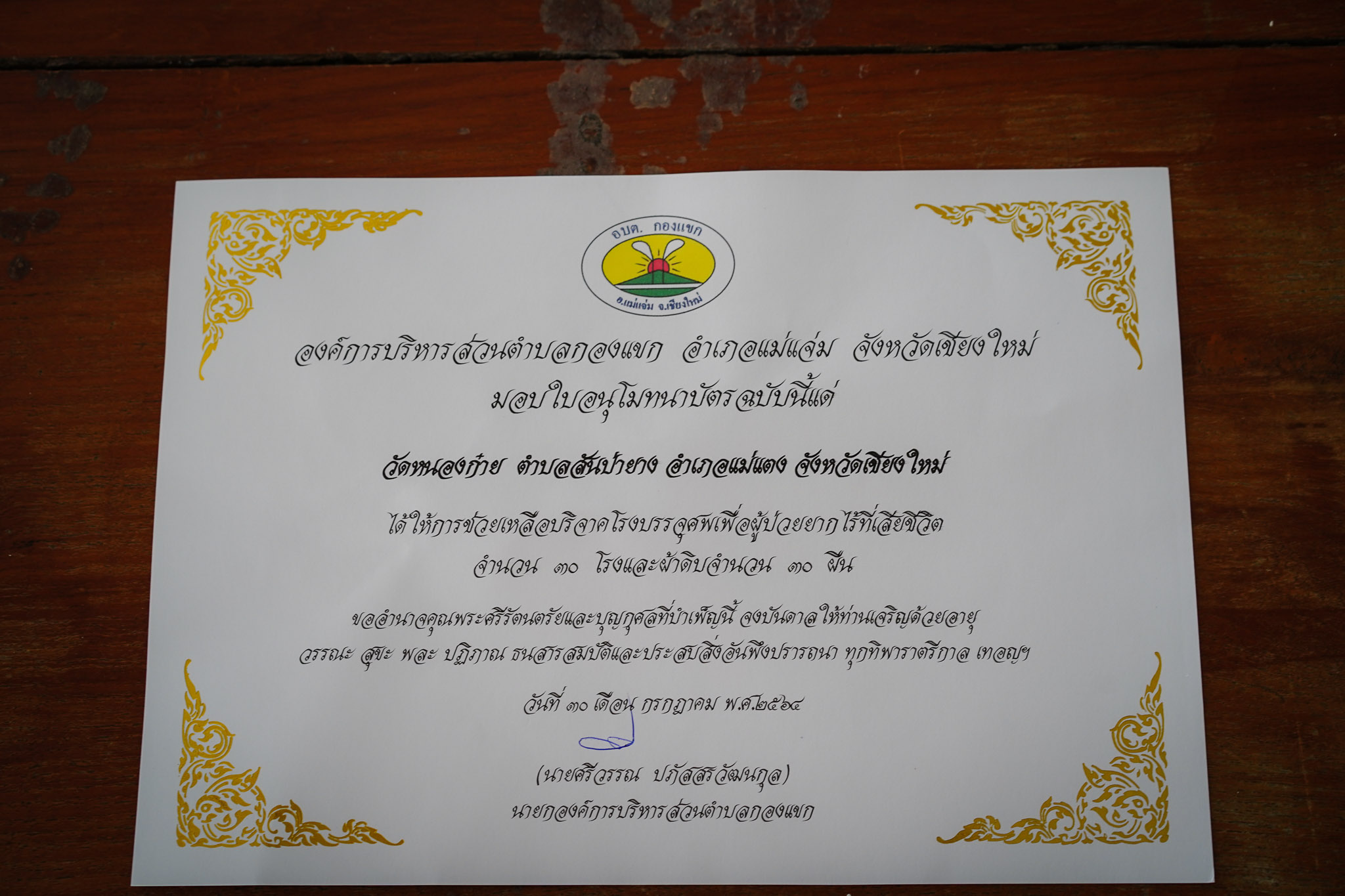กองทุนบริจาคโลงศพวัดหนองก๋าย ธนาคารกสิกรไทย สาขาแม่ริม เลขที่บัญชี 087-2-07777-4