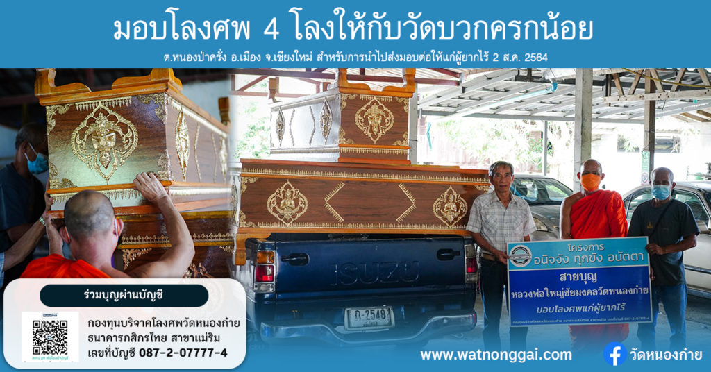วัดหนองก๋ายมอบโลงศพ 4 โลง ให้กับวัดบวกครกน้อย อ.เมือง จ.เชียงใหม่ 2 ส.ค. 2564
