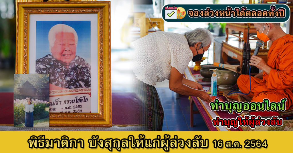 วิธีที่ 2 ทำบุญออนไลน์ผ่านทางออนไลน์ผ่านบัญชีธนาคารที่จะใส่ไว้ด้านล่าง หลังจากทำบุญเรียบร้อยแล้วสามารถแจ้งรายละเอียด นำชื่อของผู้ล่วงลับ ส่งรูปมาทางออนไลน์ทางวัดจะทำการพิมพ์ภาพของผู้ล่วงลับ ใส่กรอบและนำเข้าทำพีธี
