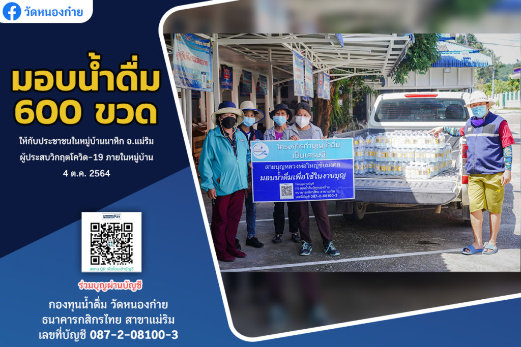 อนุโมทนาบุญกับเจ้าภาพที่ร่วมบริจาคน้ำดื่ม 600 ขวดให้กับประชาชนที่ได้รับผลกระทบจากวิกฤตโควิด-19 บ้านนาหืก อ.แม่ริม จ.เชียงใหม่