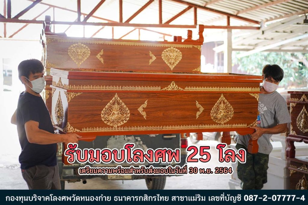 28 พฤศจิกายน 2564 วัดหนองก๋ายได้รับมอบโลงศพจำนวน 25 โลงที่ได้รับการร่วมบุญบริจาคจากเจ้าภาพทุกท่านเตรียมความพร้อมสำหรับการส่งมอบต่อไปในเดือนพฤศจิกายน 2564 นี้