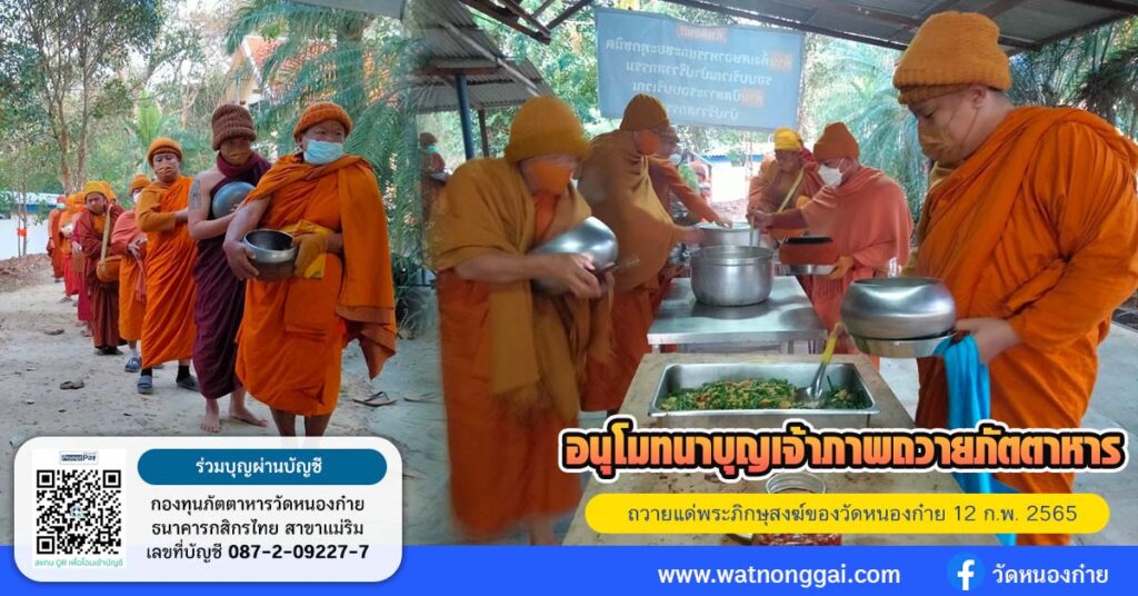 วัดหนองก๋ายขออนุโมทนาบุญกับเจ้าภาพถวายภัตตาหาร สร้างมหาทานบารมีถวายเป็นสังฆทานแด่พระภิกษุสงฆ์ของทางวัดฯ และ พระภิกษุที่มาปฏิบัติธรรม ณ ศูนย์ปฏิบัติธรรมวัดหนองก๋าย สำหรับผู้ที่สนใจสามารถร่วมบุญถวายภัตตาหารได้ทุกๆ วัน ทั้งที่มาด้วยตนเองทางวัดก็จะทำการจัดสถานที่เพื่ออำนวยความสะดวกแก่ทุกท่าน หรือสามารถทำบุญออนไลน์ ถวายภัตตาหาร เช้า เพล ทางวัดจะทำการจัดสรรภัตตาหารที่ดีที่สุด ปราณีตที่สุดตามกำลังศรัทธาของญาติโยมที่ร่วมบุญ เนื่องในวันพิเศษต่างๆ ทำบุญสะเดาะเคราะห์ ทำบุญวันเกิดตามที่ทางเจ้าภาพต้องการ