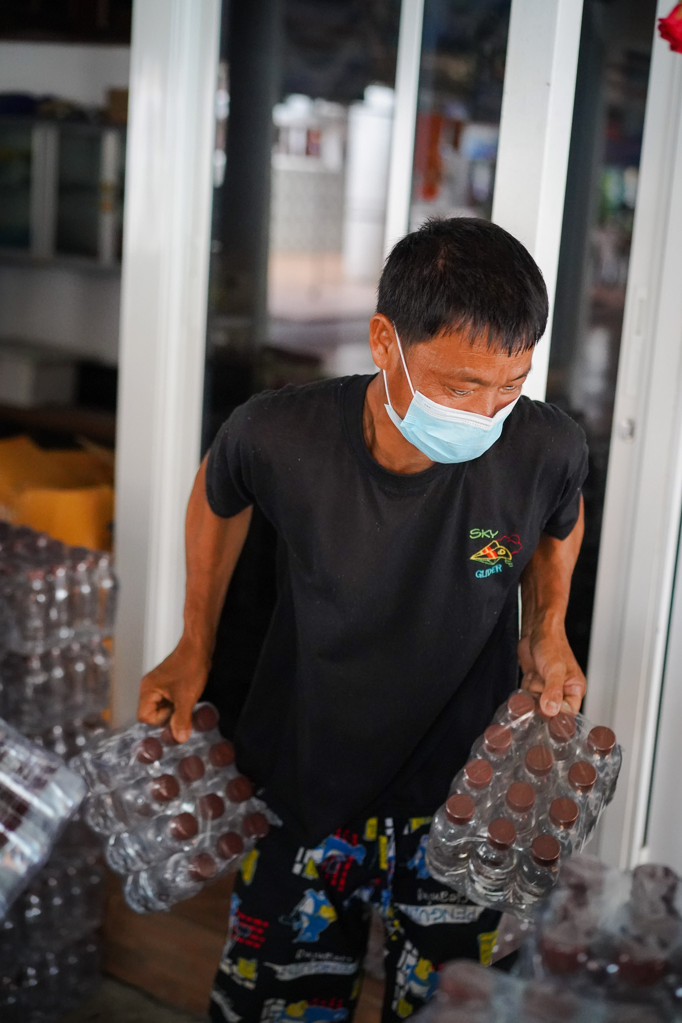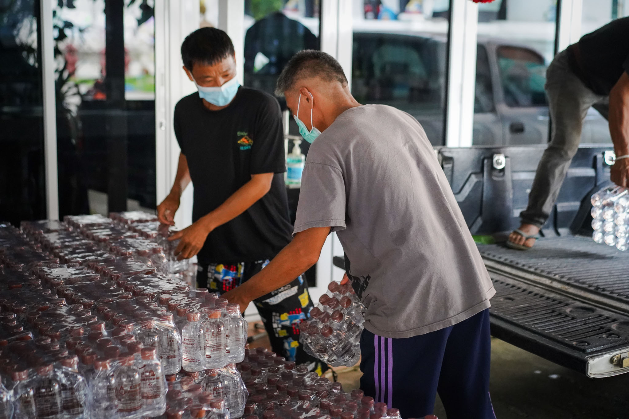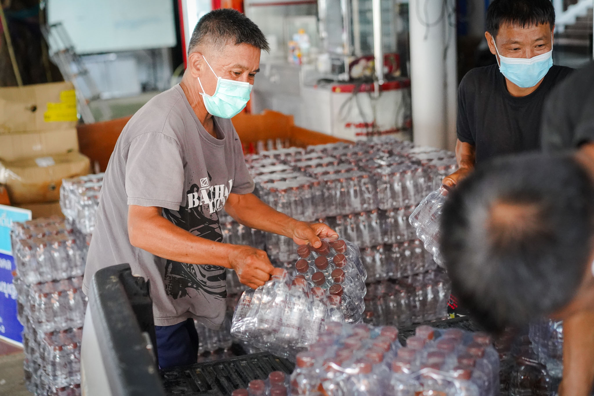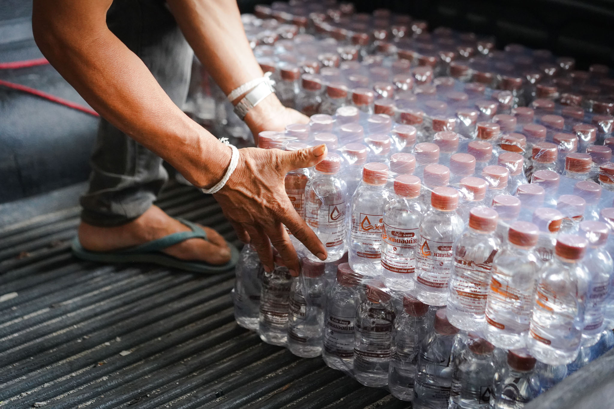 น้ำดื่มวัดหนองก๋ายนำมาส่งในแต่ละครั้งมากกว่า 500 แพ็ค 6,000 ขวดเพื่อให้เพียงพอต่อความต้องการในแต่ละครั้ง