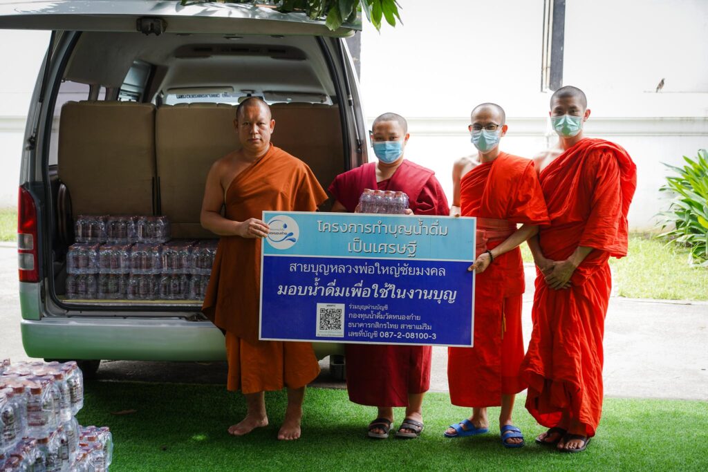 น้ำดื่มส่วนนึ่งมอบแด่พระภิกษุสงฆ์ผู้ปฏิบัติธรรม ตามศูนย์ปฏิบัติธรรมต่างๆ รวมถึงงานวัดงานบุญที่จัดขึ้น