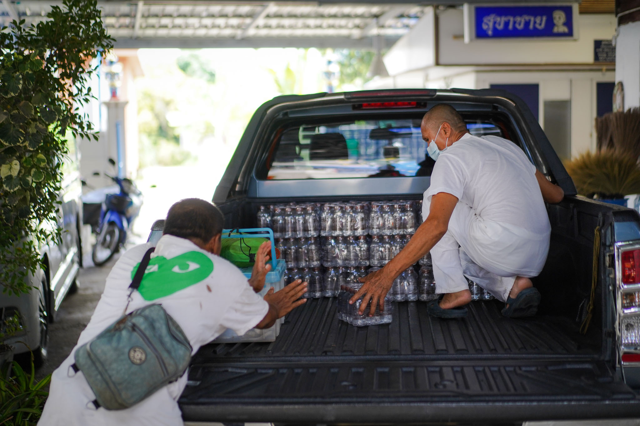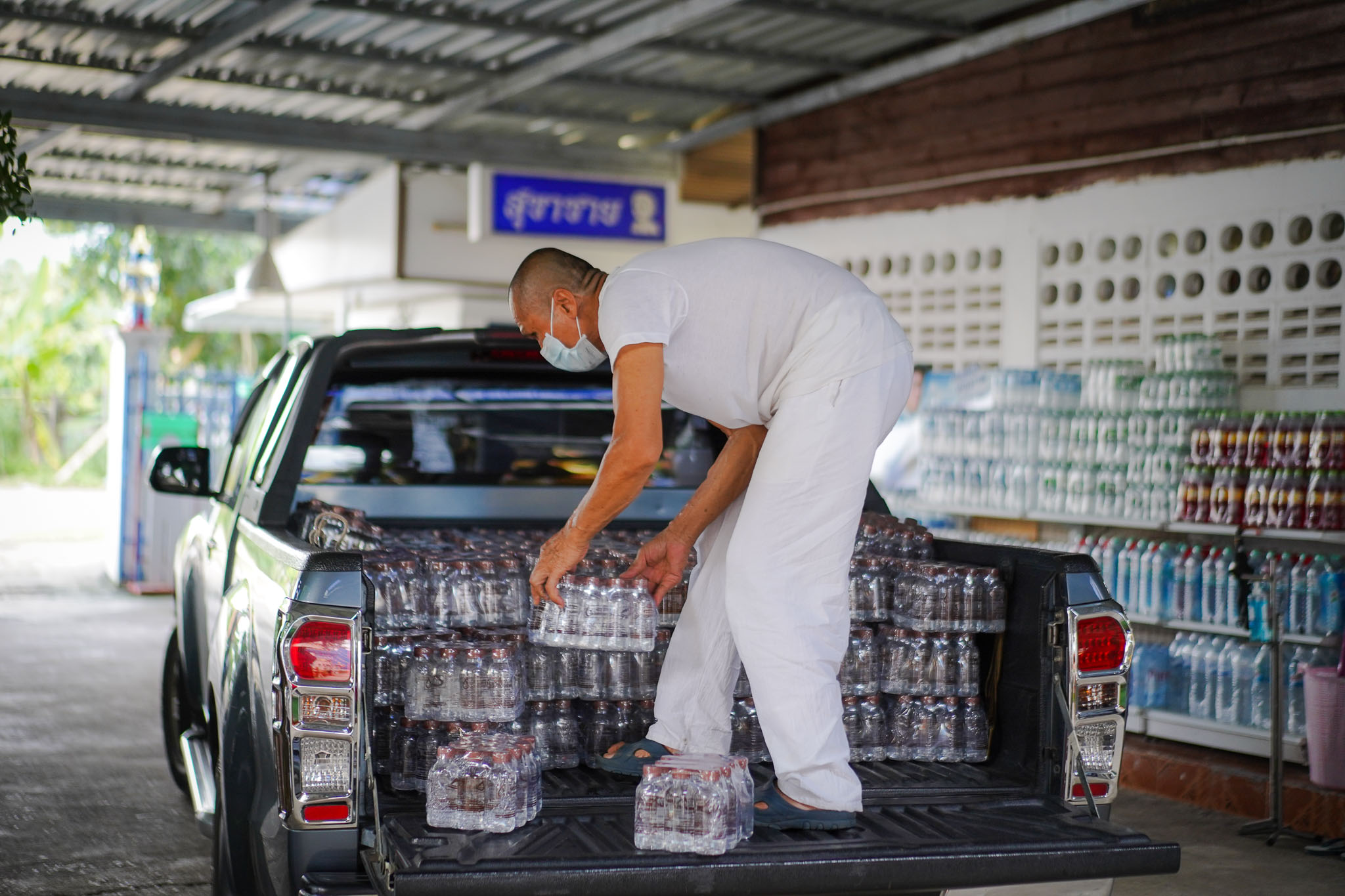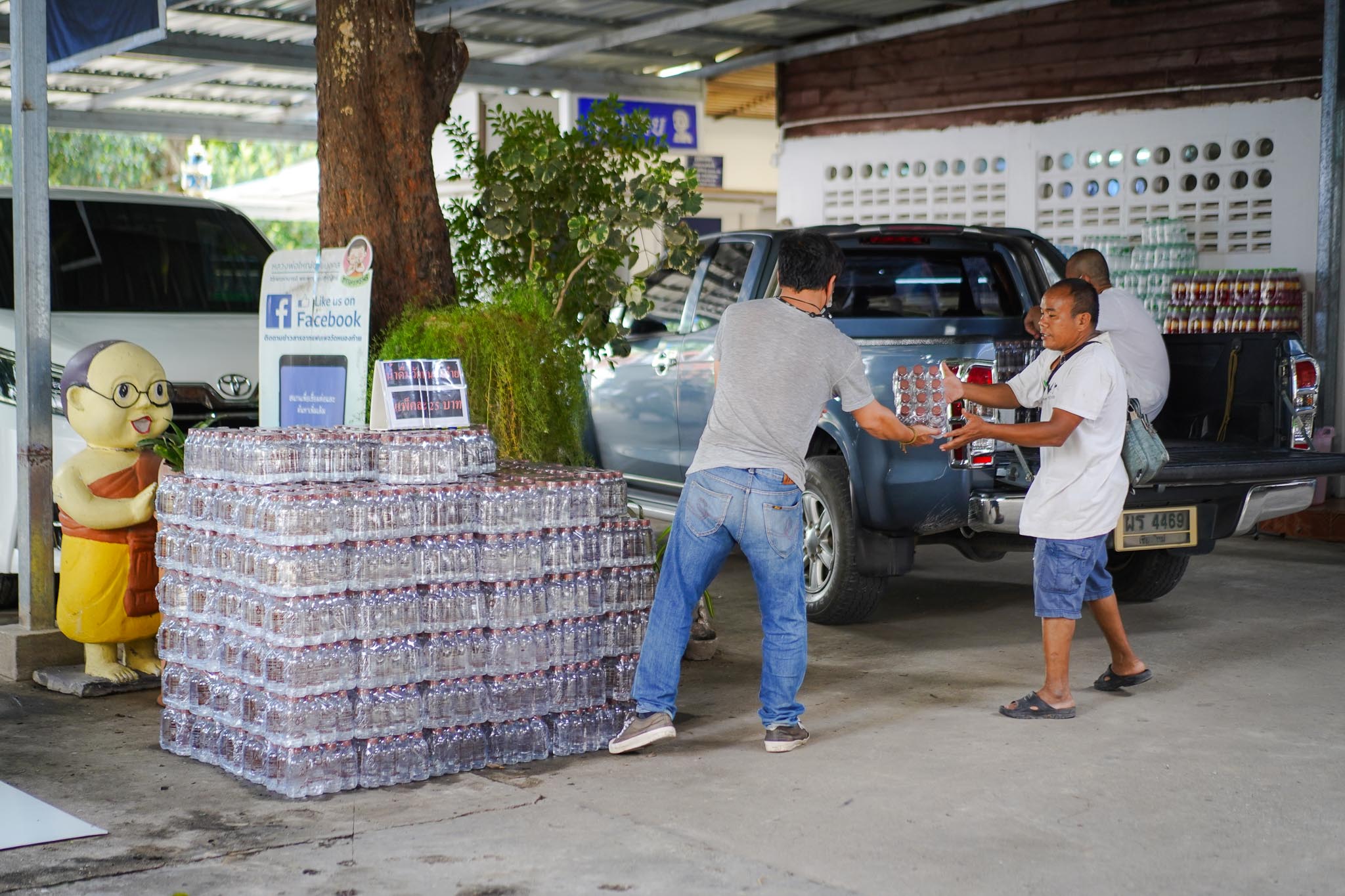 น้ำดื่มวัดหนองก๋ายนำมาส่งในแต่ละครั้งมากกว่า 500 แพ็ค 6,000 ขวดเพื่อให้เพียงพอต่อความต้องการในแต่ละครั้ง