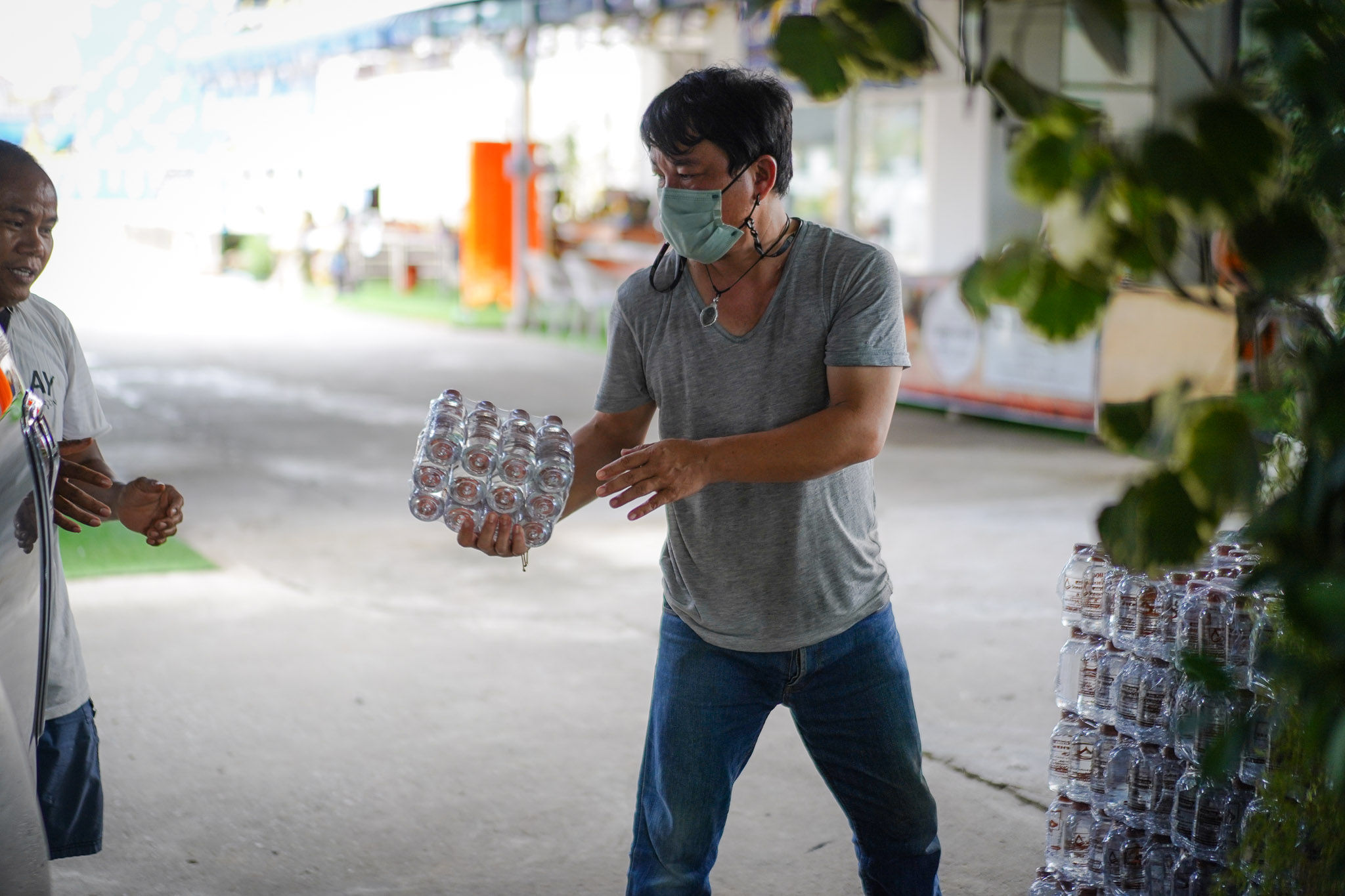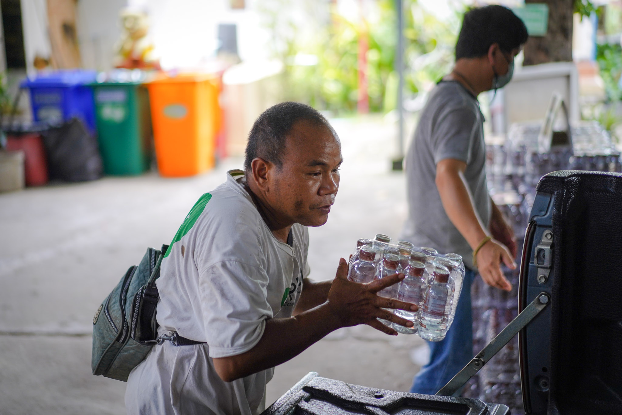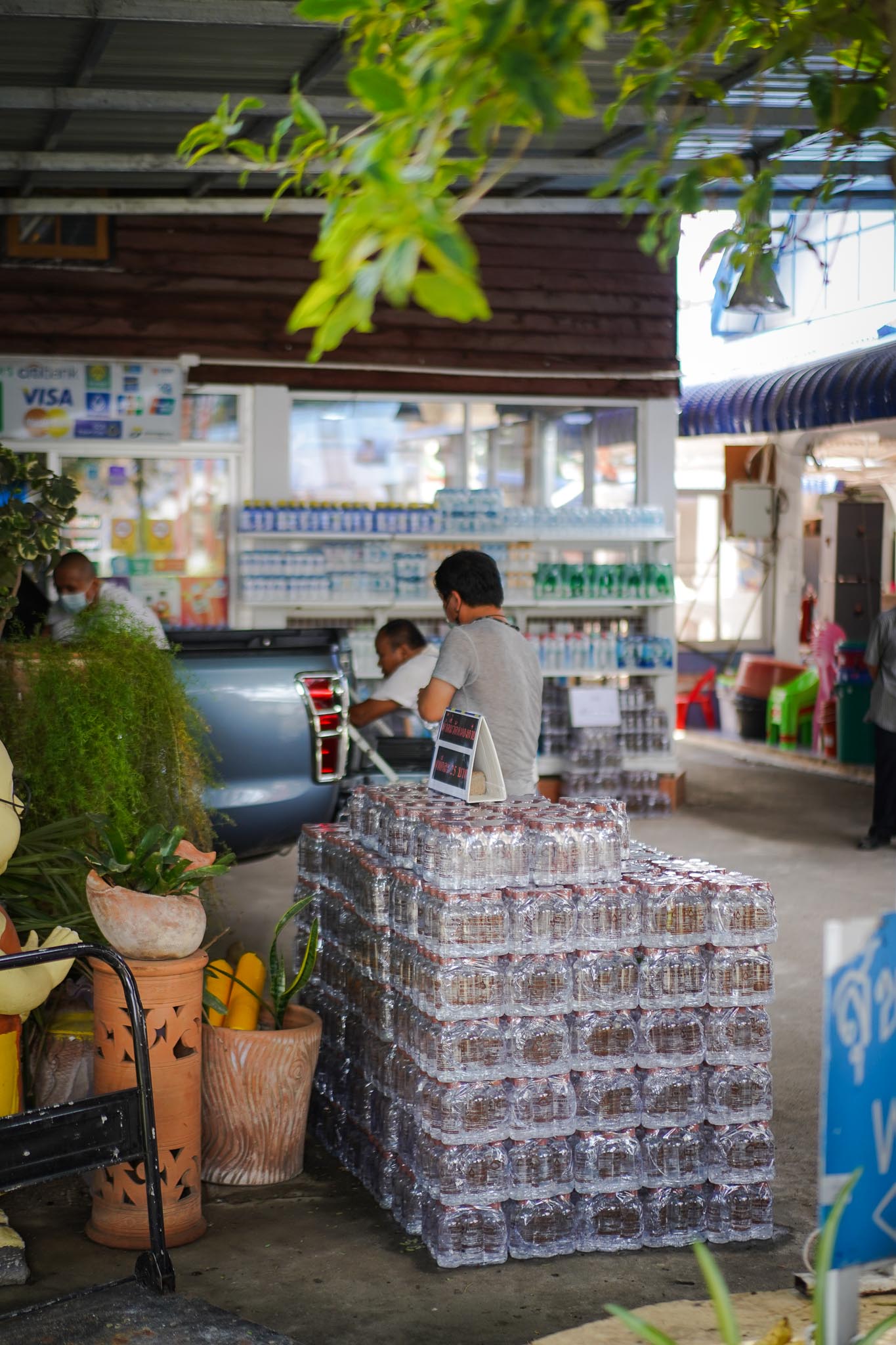 น้ำดื่มวัดหนองก๋ายนำมาส่งในแต่ละครั้งมากกว่า 500 แพ็ค 6,000 ขวดเพื่อให้เพียงพอต่อความต้องการในแต่ละครั้ง