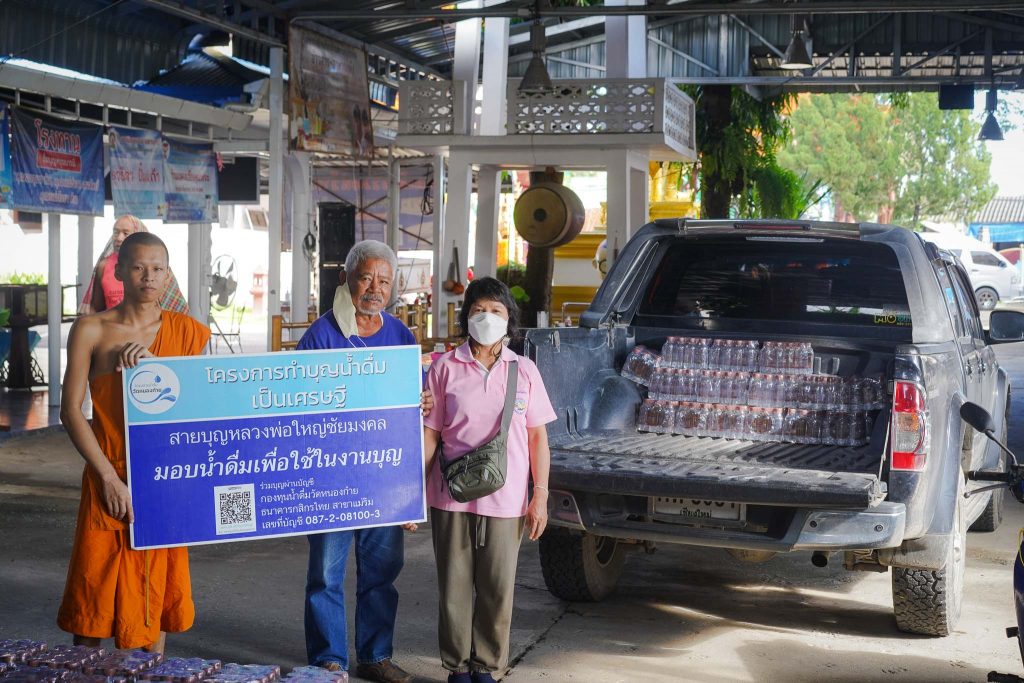 น้ำดื่มส่วนนึ่งมอบแด่พระภิกษุสงฆ์ผู้ปฏิบัติธรรม ตามศูนย์ปฏิบัติธรรมต่างๆ รวมถึงงานวัดงานบุญที่จัดขึ้น