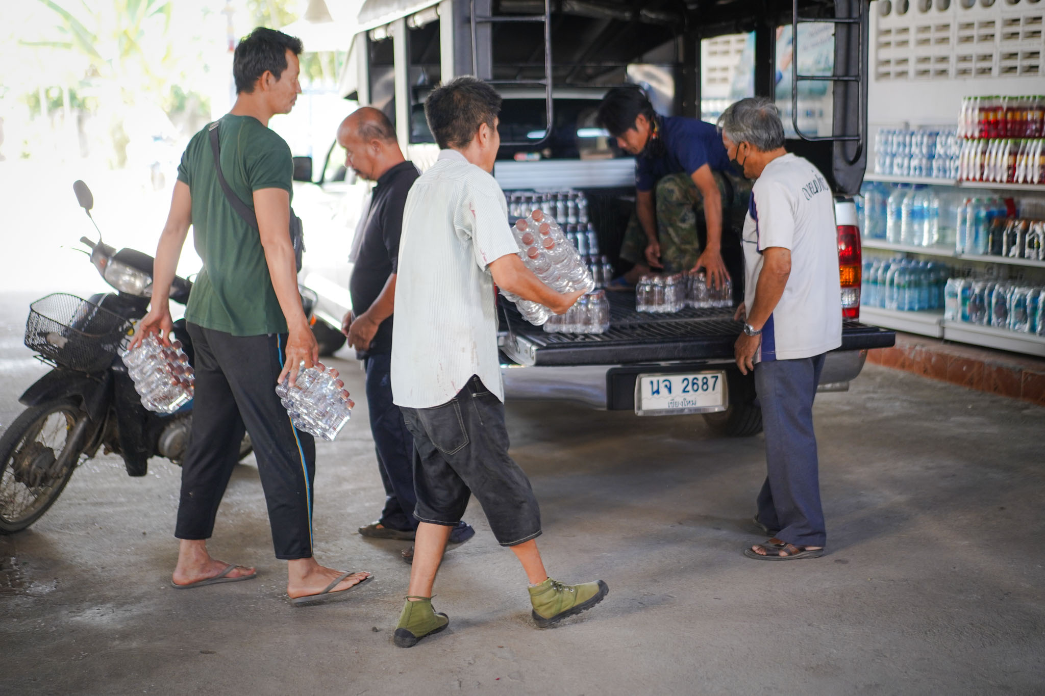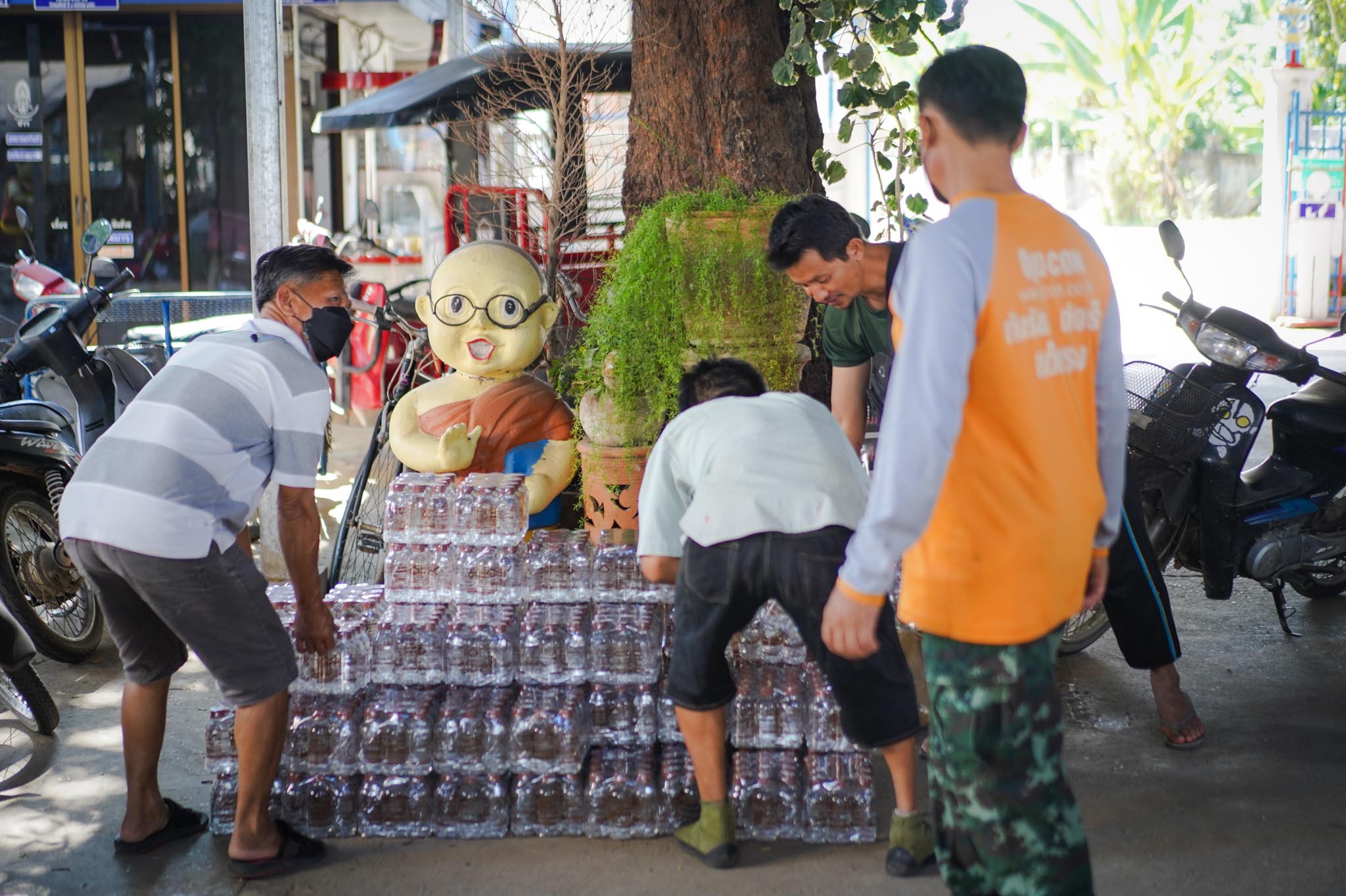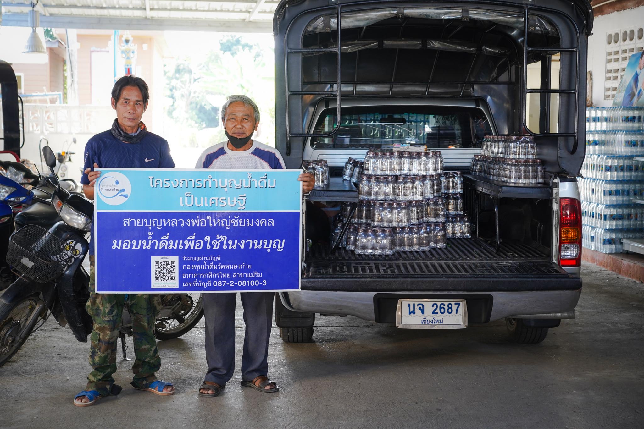 น้ำดื่มวัดหนองก๋ายนำมาส่งในแต่ละครั้งมากกว่า 500 แพ็ค 6,000 ขวดเพื่อให้เพียงพอต่อความต้องการในแต่ละครั้ง