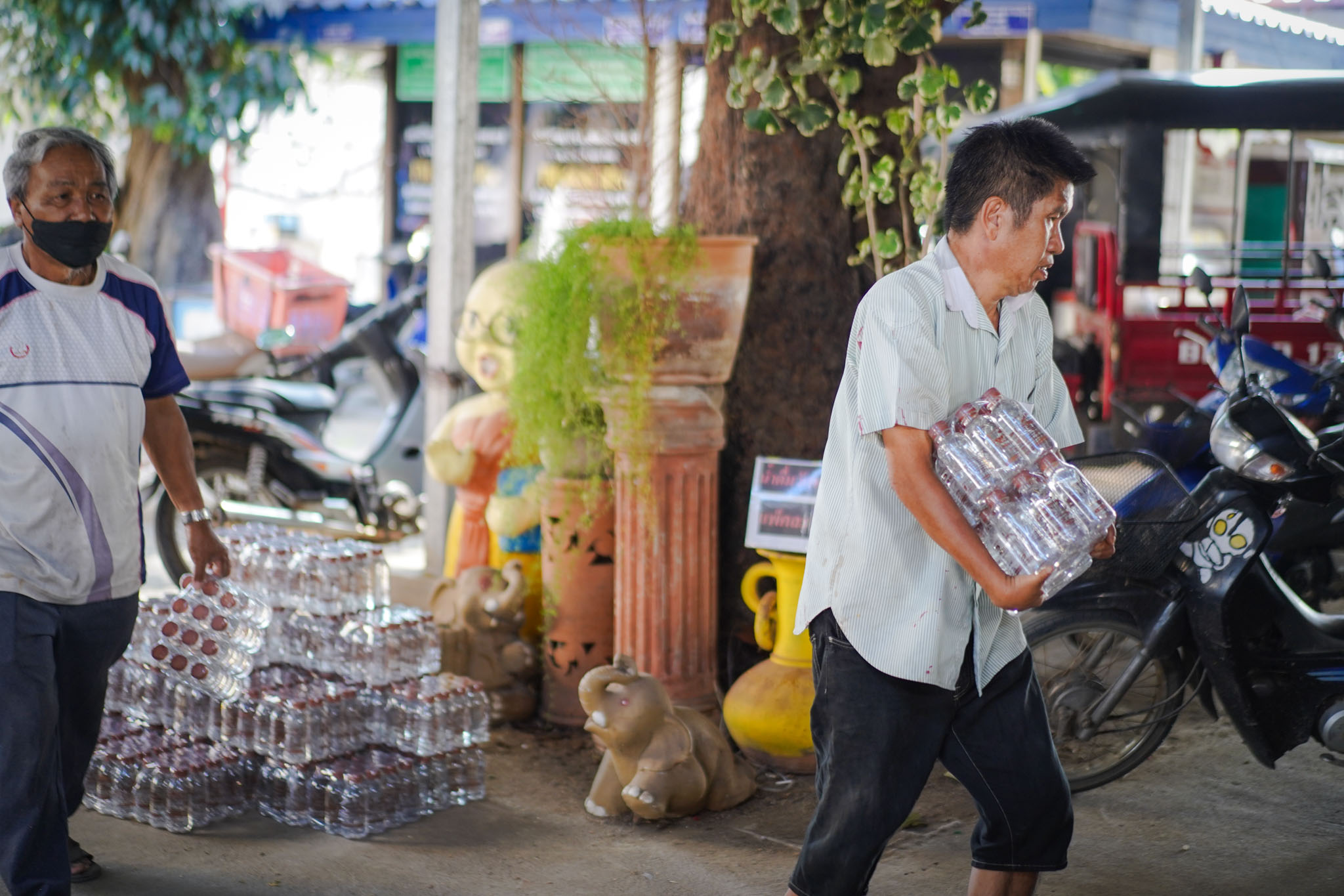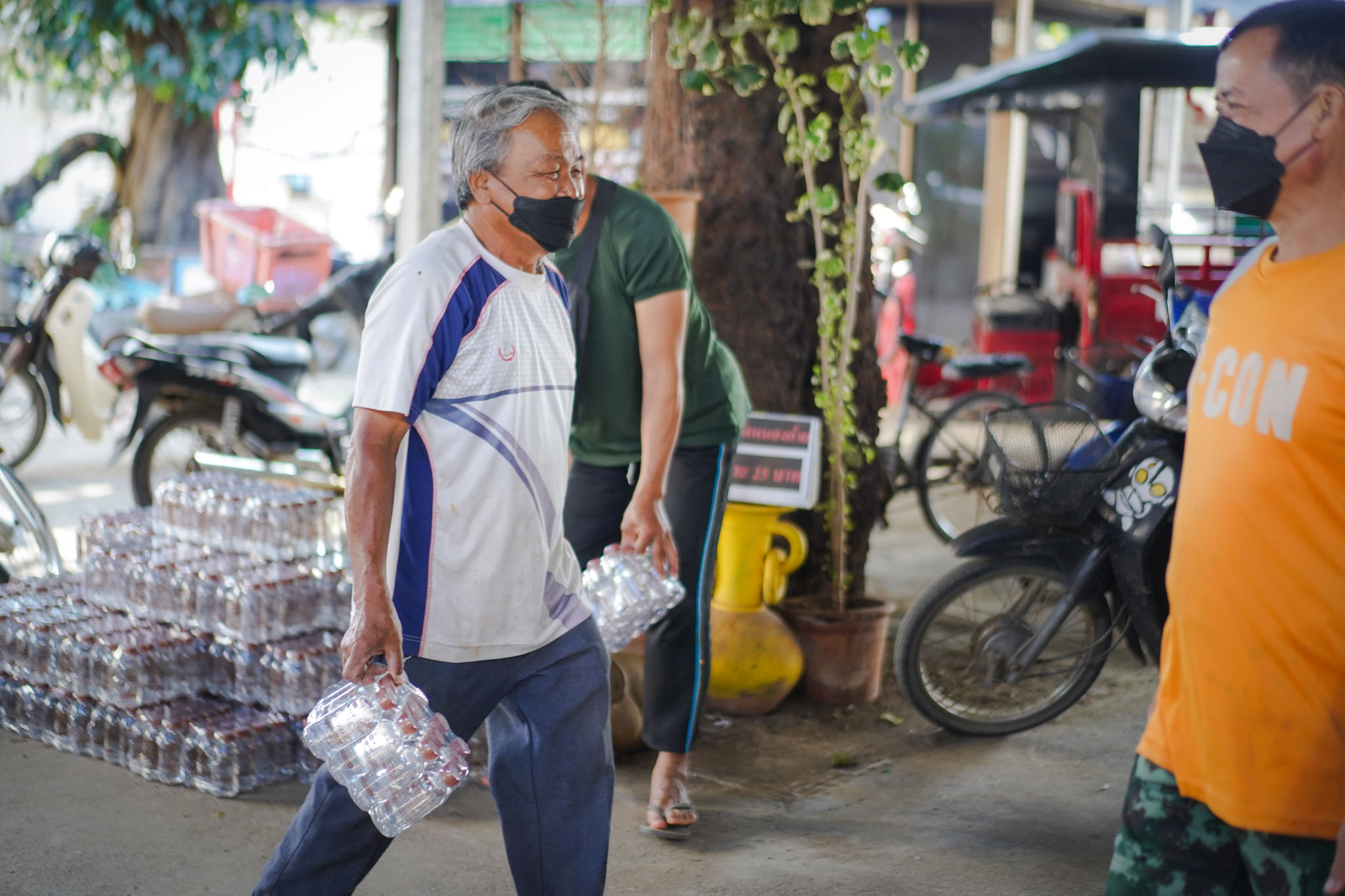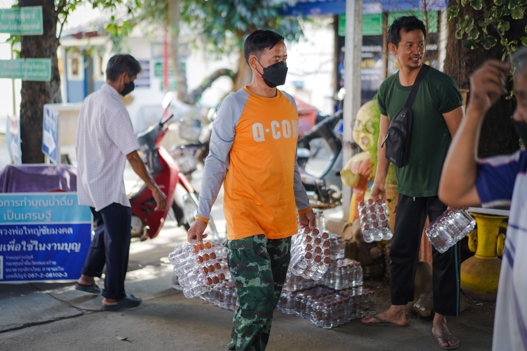น้ำดื่มวัดหนองก๋ายนำมาส่งในแต่ละครั้งมากกว่า 500 แพ็ค 6,000 ขวดเพื่อให้เพียงพอต่อความต้องการในแต่ละครั้ง