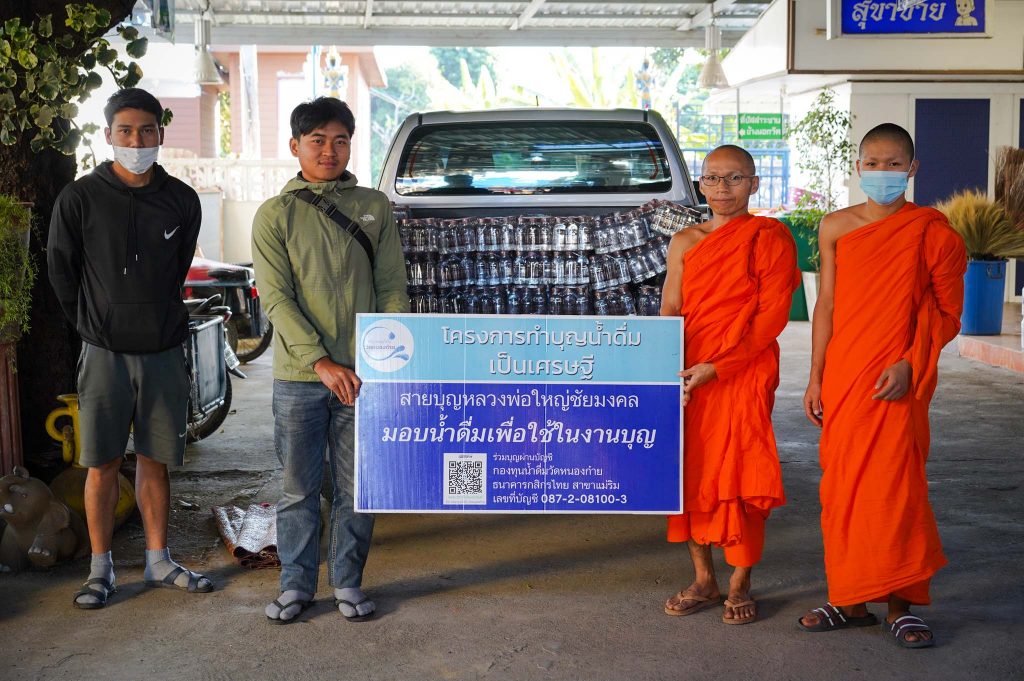 น้ำดื่มส่วนนึ่งมอบแด่พระภิกษุสงฆ์ผู้ปฏิบัติธรรม ตามศูนย์ปฏิบัติธรรมต่างๆ รวมถึงงานวัดงานบุญที่จัดขึ้น