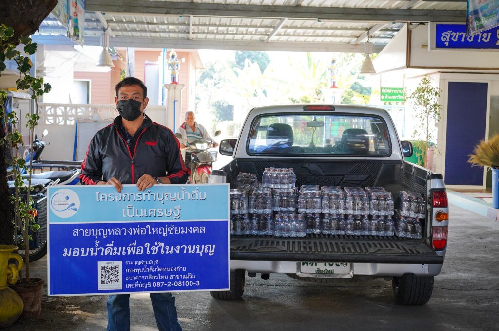 น้ำดื่มวัดหนองก๋ายนำมาส่งในแต่ละครั้งมากกว่า 500 แพ็ค 6,000 ขวดเพื่อให้เพียงพอต่อความต้องการในแต่ละครั้ง