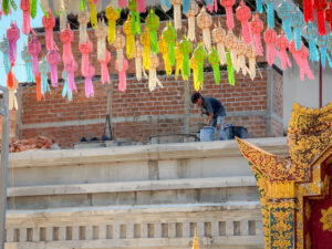 ทีมช่างเข้าเก็บงานสถาปัตย์ซุ้มประดับ พระโพธิสัตว์ อุโบสถเจดีย์พุทธคยาวัดหนองก๋าย