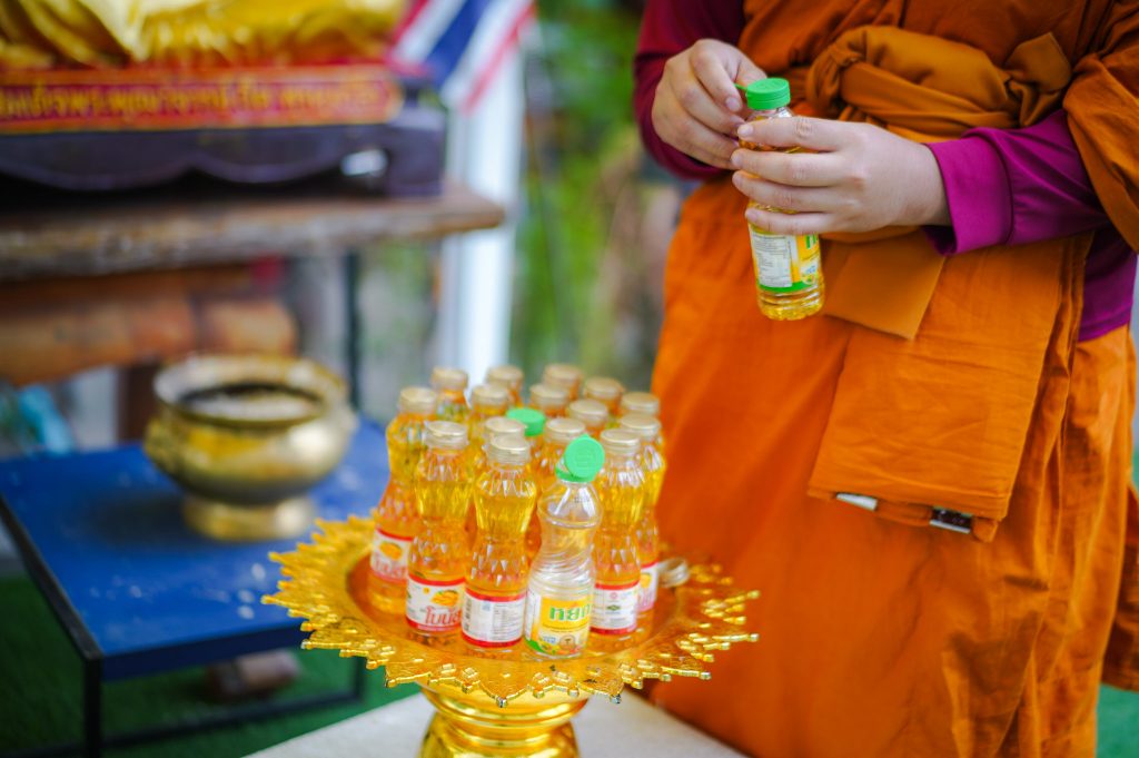 ที่วัดหนองก๋ายเรารับมาจากเจ้าภาพทุกคนน้ำมันขวดละ 23 บาทสนใจร่วมบุญได้ทุกวัน