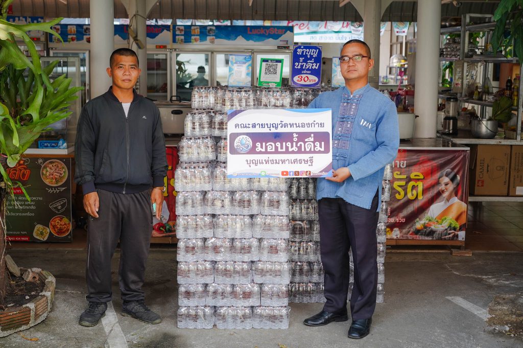 ไม่มีที่สิ้นสุดจากการทำบุญในครั้งนี้ถวายน้ำดื่มแพ็คละ 30 บาท