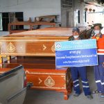และคณะเจ้าที่ปฏิบัติงานของโรงพยาบาลทุกคนเปิดรับเจ้าภาพโลงศพ 60 โลง ผ้าดิบห่อศพ 60 ผืน