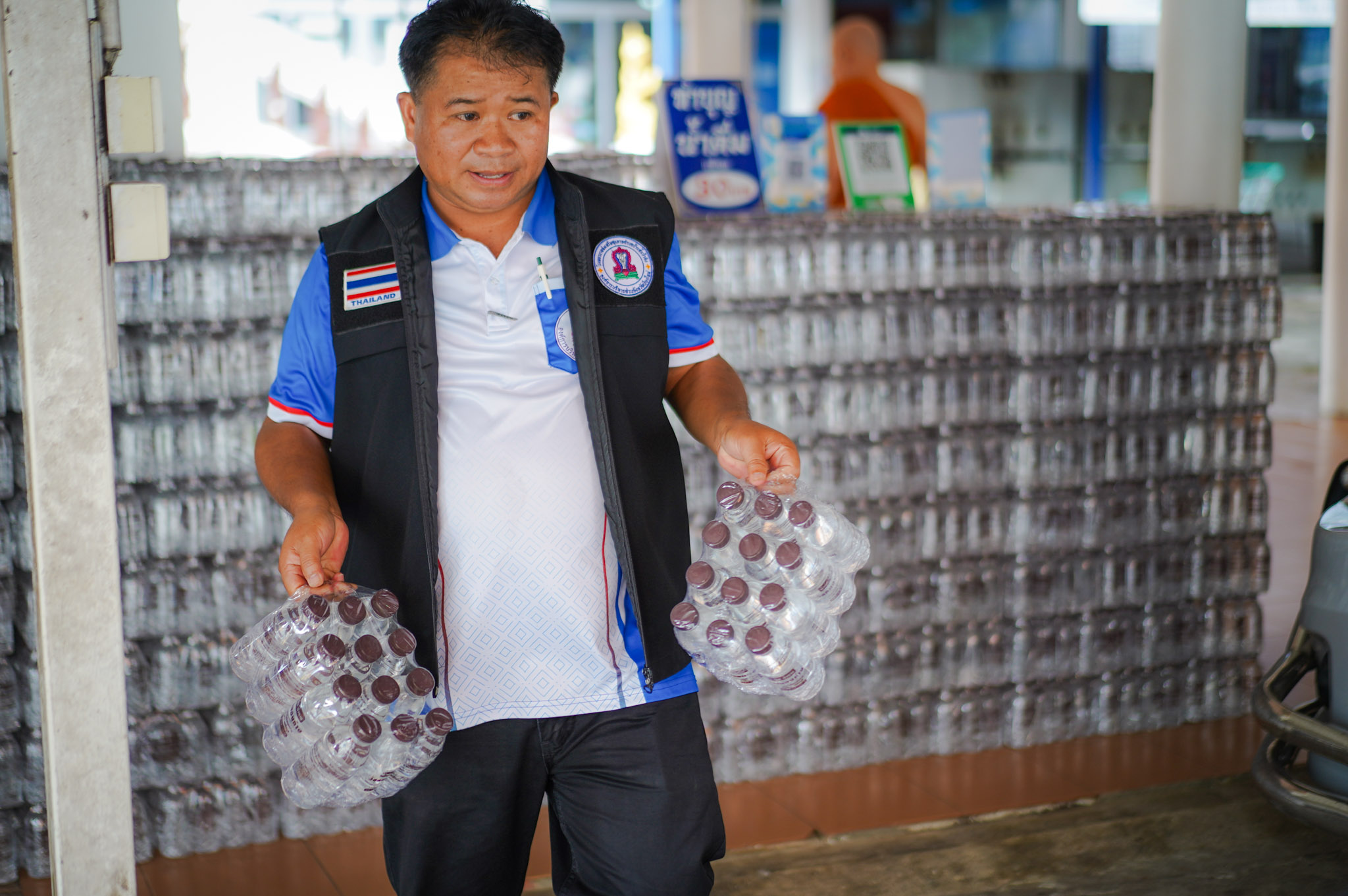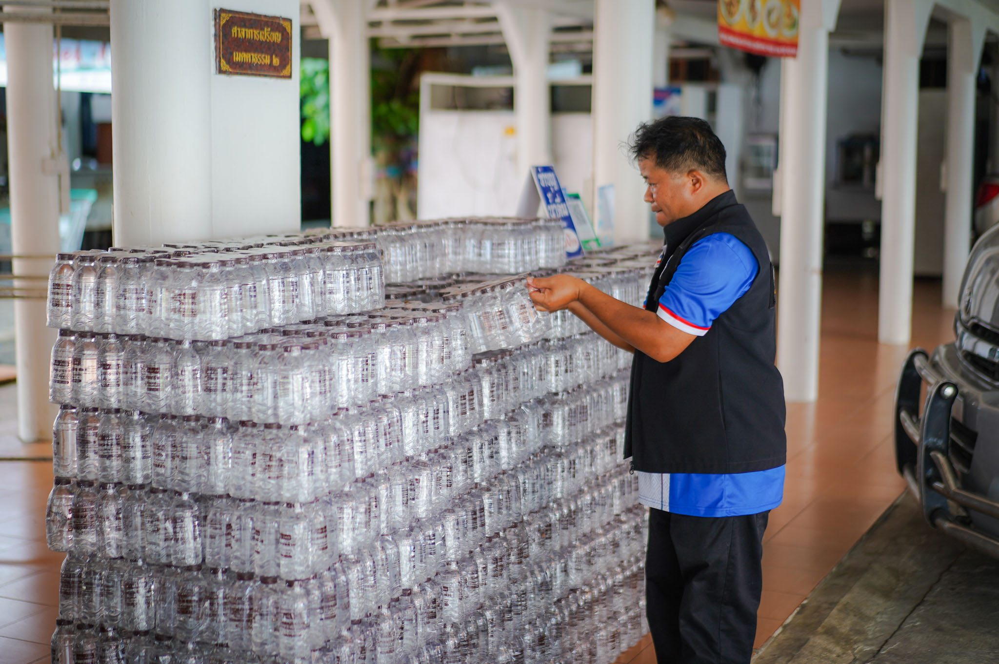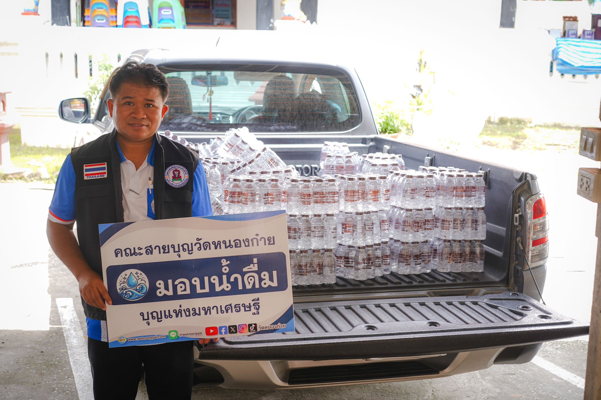 น้ำดื่มวัดหนองก๋ายนำมาส่งในแต่ละครั้งมากกว่า 500 แพ็ค 6,000 ขวดเพื่อให้เพียงพอต่อความต้องการในแต่ละครั้ง