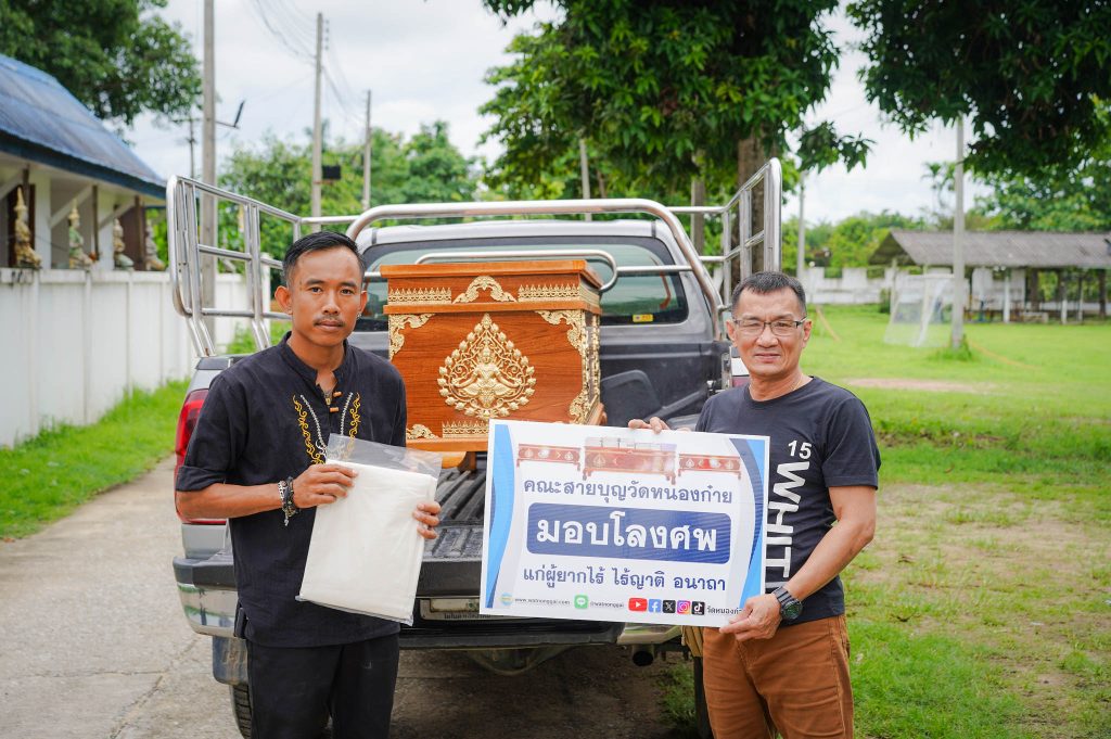 วันนี้วัดหนองก๋ายได้มอบโลงศพ 1 โลงพร้อมผ้าดิบห่อศพ
