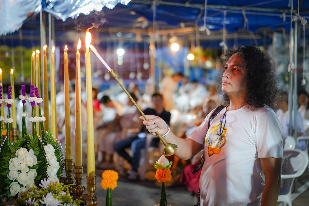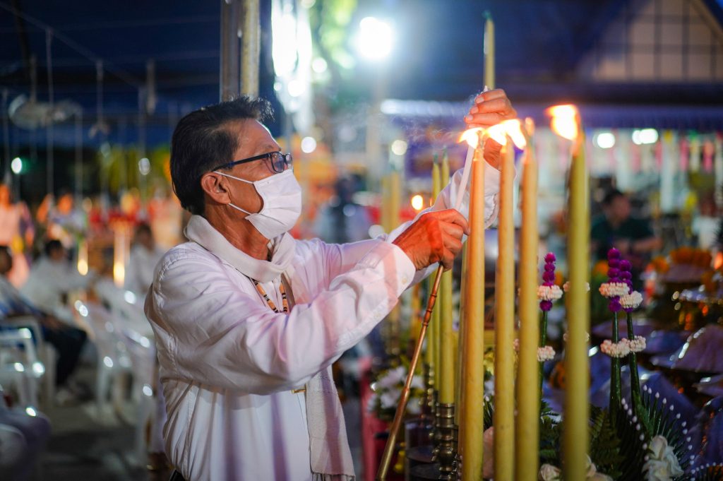 จุดเทียนบูชาธาตุทั้งสี่ ดิน-น้ำ-ลม-ไฟ