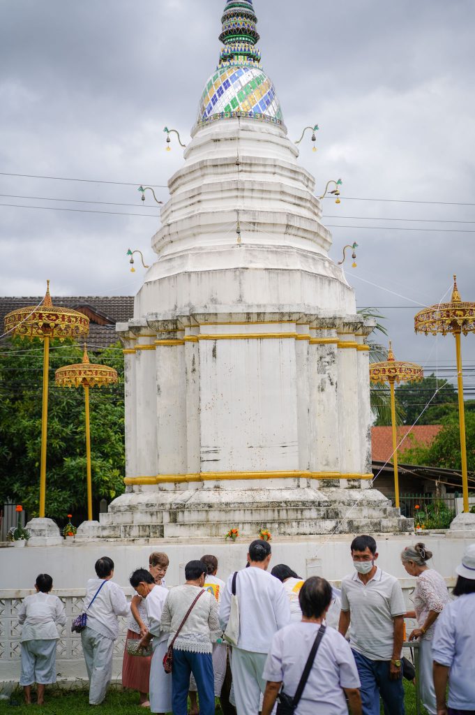 เนื่องจากองค์พระบรมธาตุ ส่วนใหญ่บรรจุอยู่ใต้ฐานพระเจดีย์ การสรงน้ำจึงกระทำโดยการราดน้ำไปบนองค์พระเจดีย์ เชื่อกันว่าเป็นที่บรรจุพระบรมสารีริกธาตุขององค์สมเด็จพระสัมมาสัมพุทธเจ้า เป็นของที่ศักดิ์สิทธิ์ ดังนั้นบริเวณรอบ องค์เจดีย์จึงนิยมทำกำแพงแก้วกั้นไว้เป็นบริเวณลาน (ข่วง) เจดีย์ บุคคลใดประสงค์จะเข้าไปที่ลานในกำแพงแก้ว เพื่อกราบไหว้บูชา หรือเข้าไปทำความสะอาด ถ้าสวมหมวกจะต้องถอดออก ถ้าสวมรองเท้าต้องถอดรองเท้า และที่ห้ามเข้าไปในบริเวณลานเจดีย์ คือ ผู้หญิง ถือว่าถ้าผู้หญิงเข้าไปจะทำให้เสียความศักดิ์สิทธิ์ เรื่องเขตหวงห้ามนี้ไม่ได้มีแค่เรื่องพระธาตุเจดีย์กับสตรี แต่ยังมีการห้ามฆราวาสผู้ครองเรือนเข้าเขตสงฆ์ ซึ่งแม้แต่บุรุษก็ไม่สามารถเข้าได้
