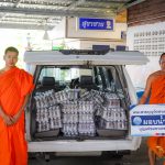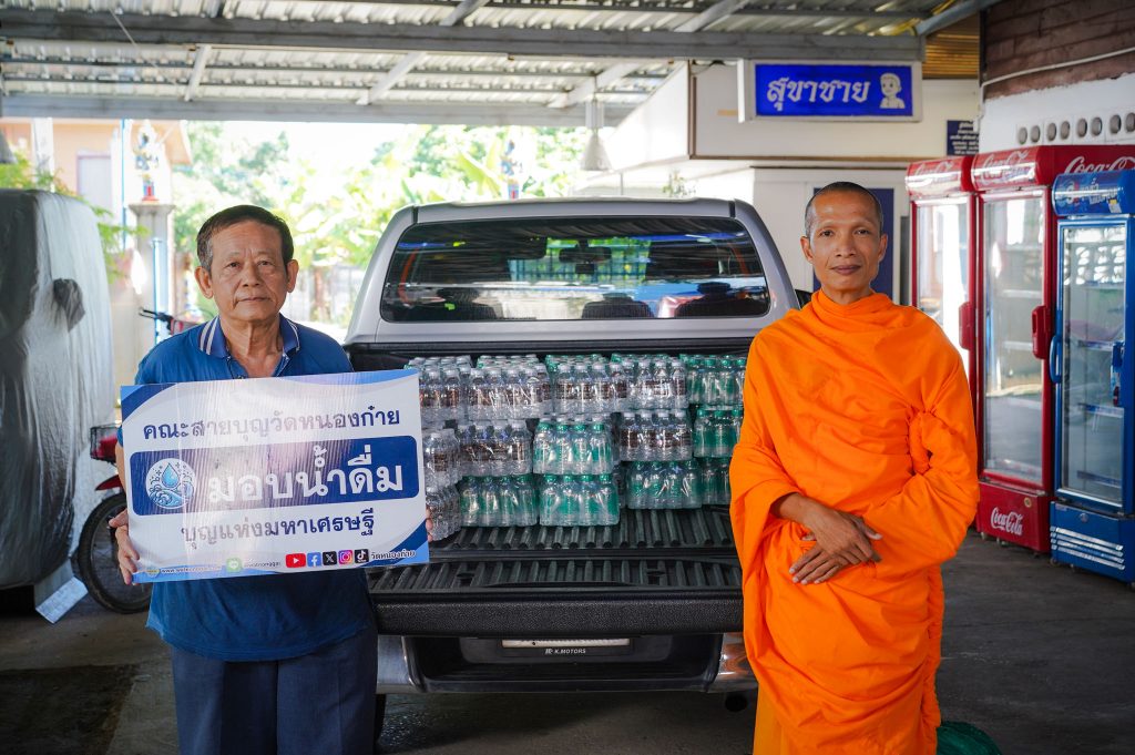 น้ำดื่มวัดหนองก๋ายนำมาส่งในแต่ละครั้งมากกว่า 500 แพ็ค 6,000 ขวดเพื่อให้เพียงพอต่อความต้องการในแต่ละครั้ง