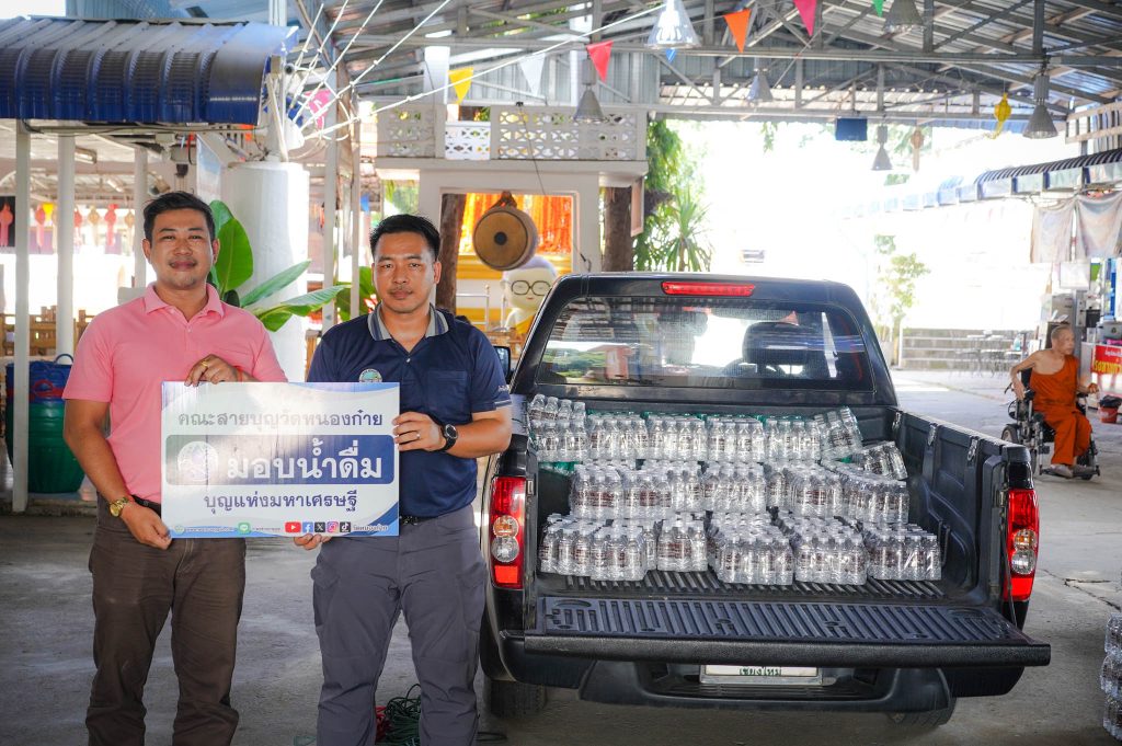 น้ำดื่มวัดหนองก๋ายนำมาส่งในแต่ละครั้งมากกว่า 500 แพ็ค 6,000 ขวดเพื่อให้เพียงพอต่อความต้องการในแต่ละครั้ง