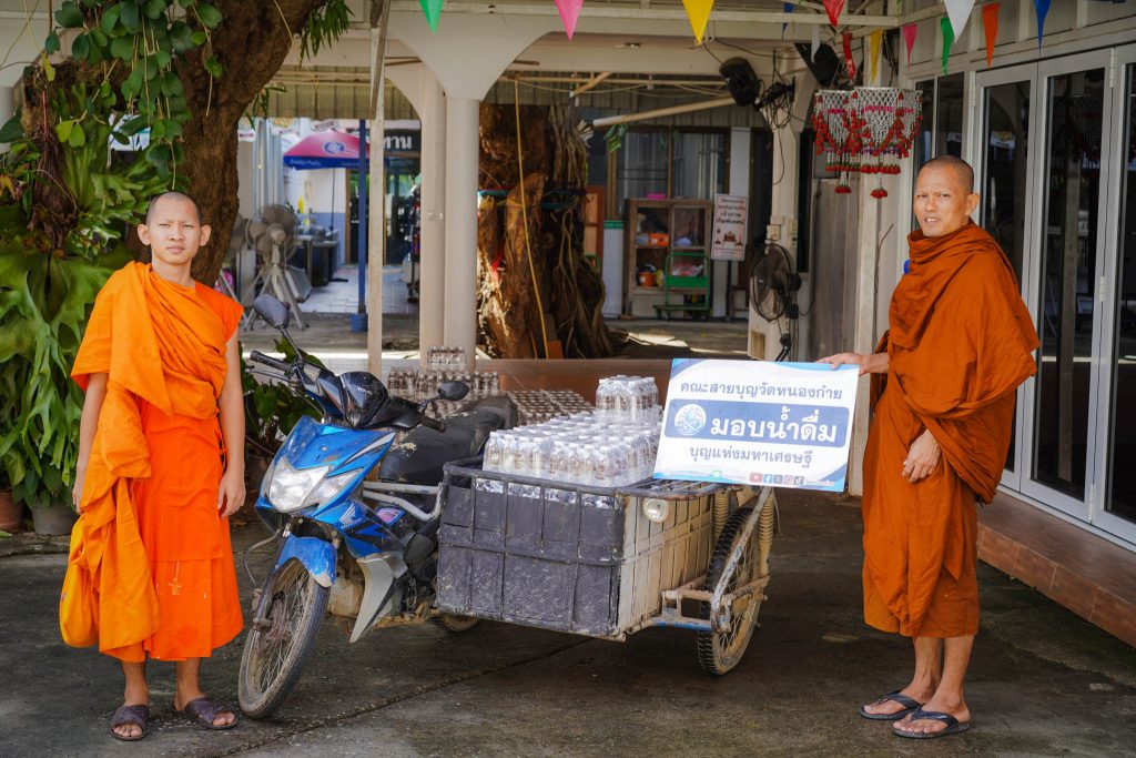 น้ำดื่มส่วนนึ่งมอบแด่พระภิกษุสงฆ์ผู้ปฏิบัติธรรม ตามศูนย์ปฏิบัติธรรมต่างๆ รวมถึงงานวัดงานบุญที่จัดขึ้น
