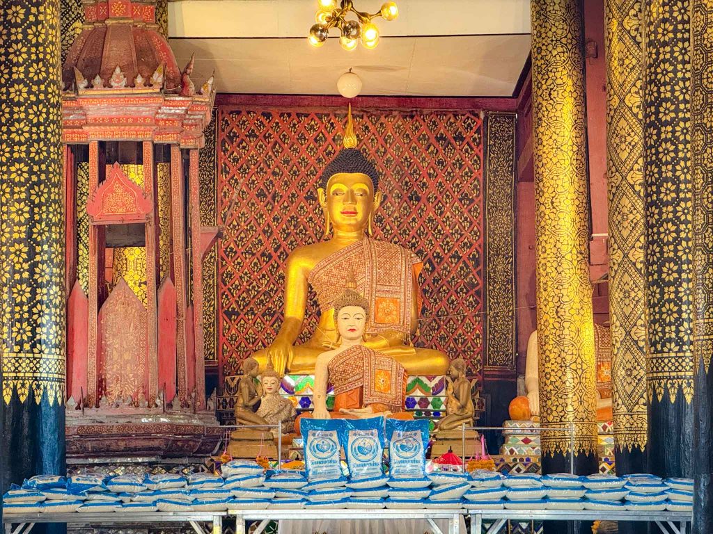 ข้าวสารจำนวน 63 ถุง น้ำหนักรวม 315 กิโลกรัม ได้รับการถวายเป็นพุทธบูชาแด่หลวงพ่อใหญ่ชัยมงคลแล้ว โดยเจ้าภาพทุกท่านได้ร่วมกันทำบุญอย่างเอื้อเฟื้อเผื่อแผ่ และชื่อของเจ้าภาพทุกท่านได้ถูกเขียนลงบนถุงข้าวสารแต่ละถุงด้วยและนำไปถวาย