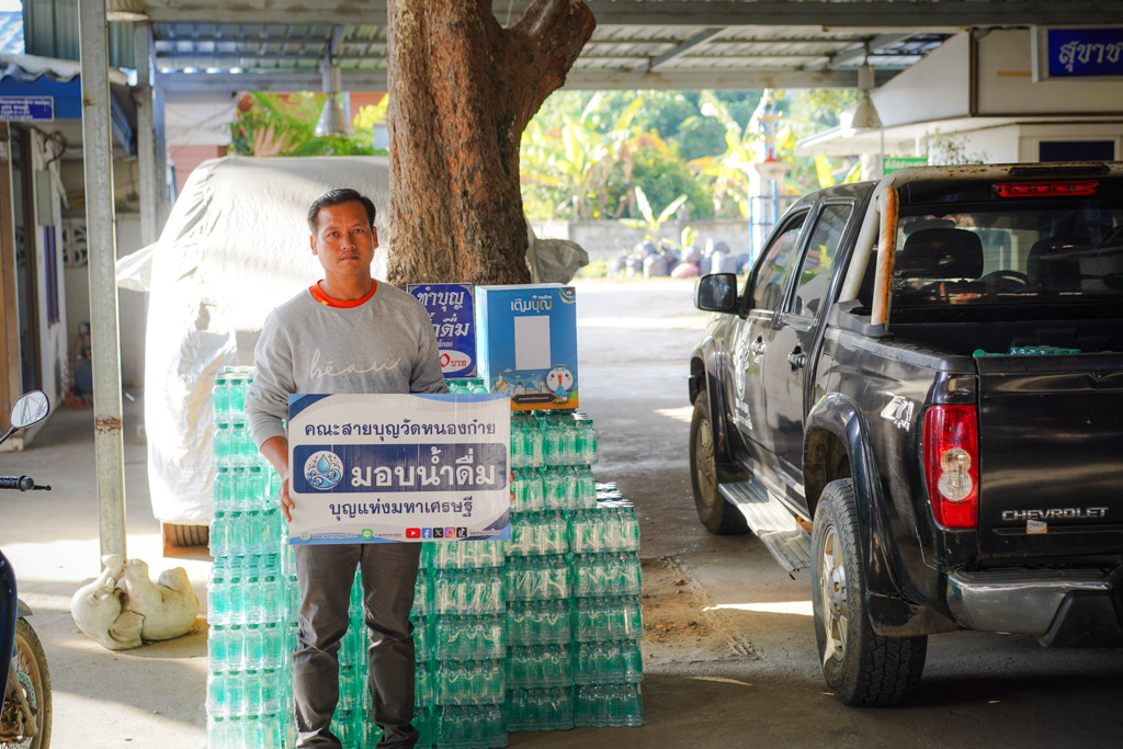 น้ำดื่มวัดหนองก๋ายนำมาส่งในแต่ละครั้งมากกว่า 500 แพ็ค 6,000 ขวดเพื่อให้เพียงพอต่อความต้องการในแต่ละครั้ง
