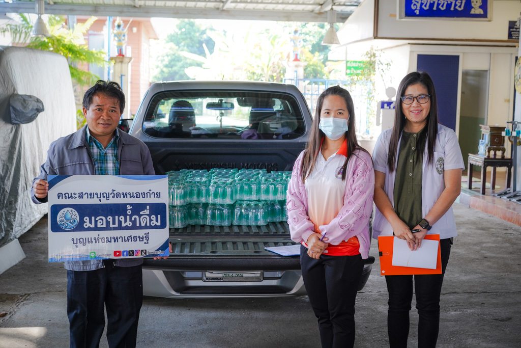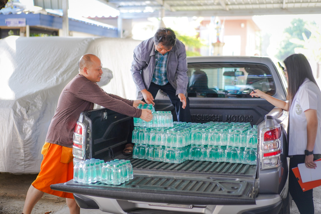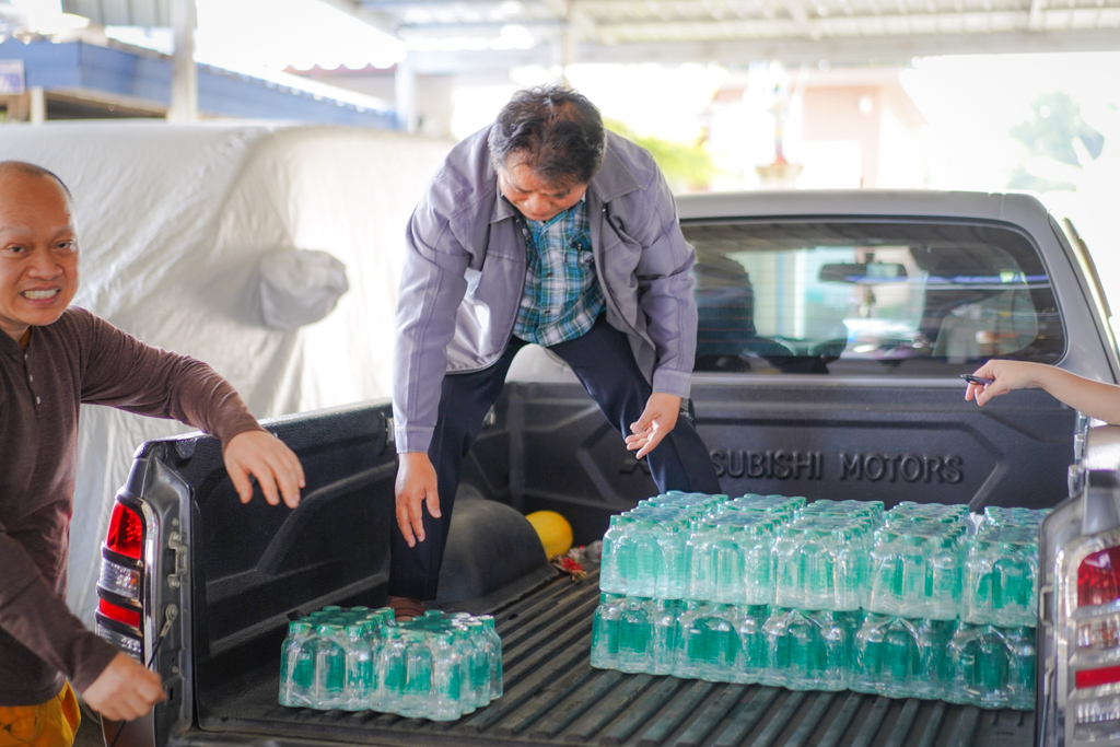 น้ำดื่มวัดหนองก๋ายนำมาส่งในแต่ละครั้งมากกว่า 500 แพ็ค 6,000 ขวดเพื่อให้เพียงพอต่อความต้องการในแต่ละครั้ง