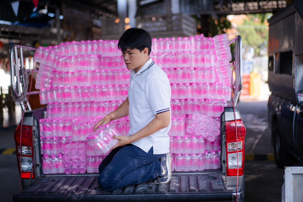 น้ำดื่มวัดหนองก๋ายนำมาส่งในแต่ละครั้งมากกว่า 500 แพ็ค 6,000 ขวดเพื่อให้เพียงพอต่อความต้องการในแต่ละครั้ง