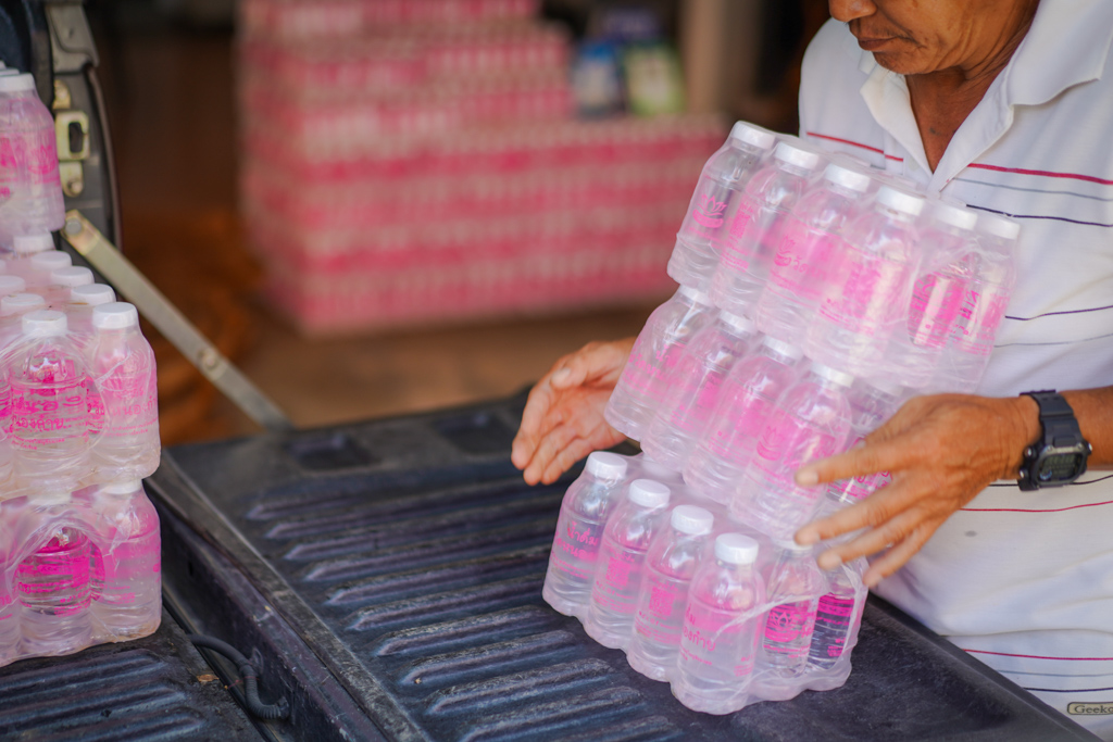 น้ำดื่มวัดหนองก๋ายนำมาส่งในแต่ละครั้งมากกว่า 500 แพ็ค 6,000 ขวดเพื่อให้เพียงพอต่อความต้องการในแต่ละครั้ง