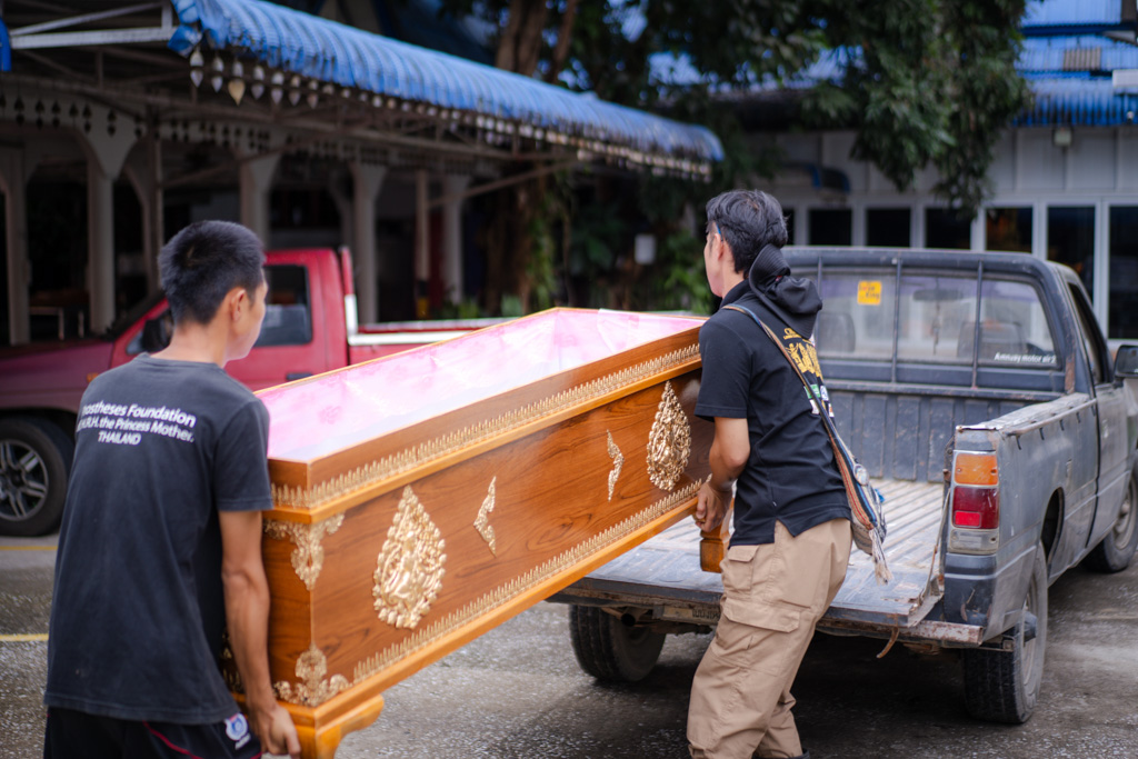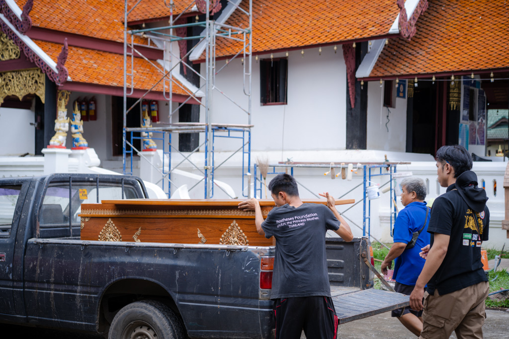 โลงศพพร้อมผ้าดิบได้น้อมมอบแก่ครอบครัวผู้เสียชีวิตในหมู่บ้านสะลวง อ.แม่ริม จ.เชียงใหม่