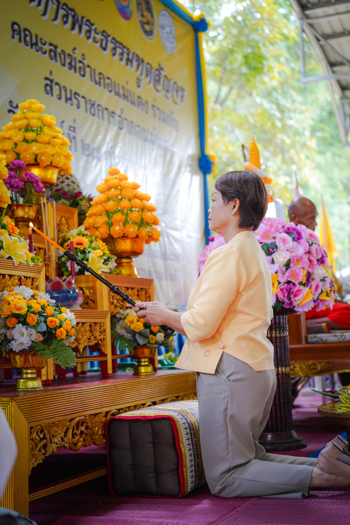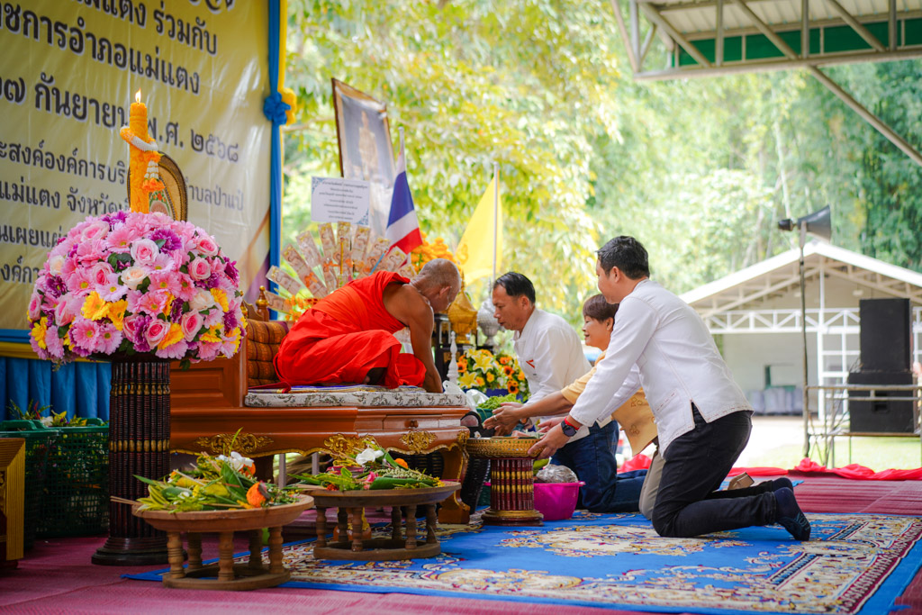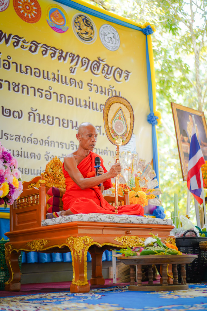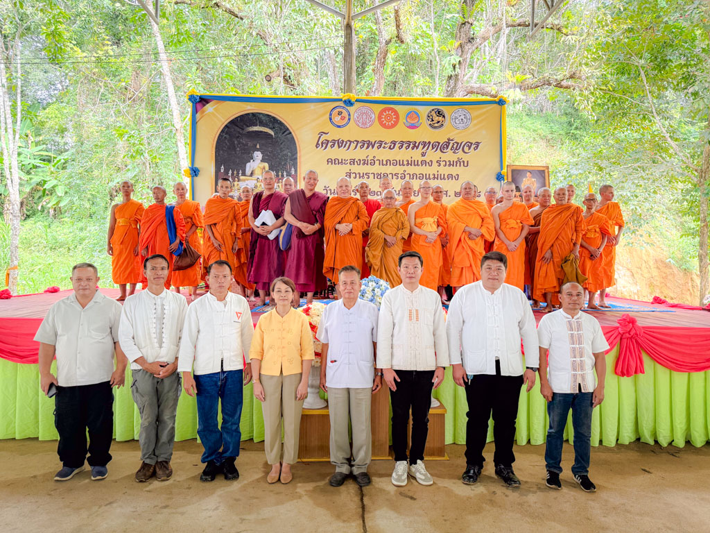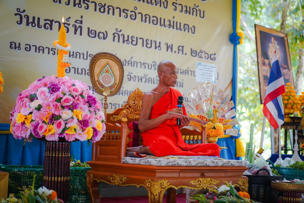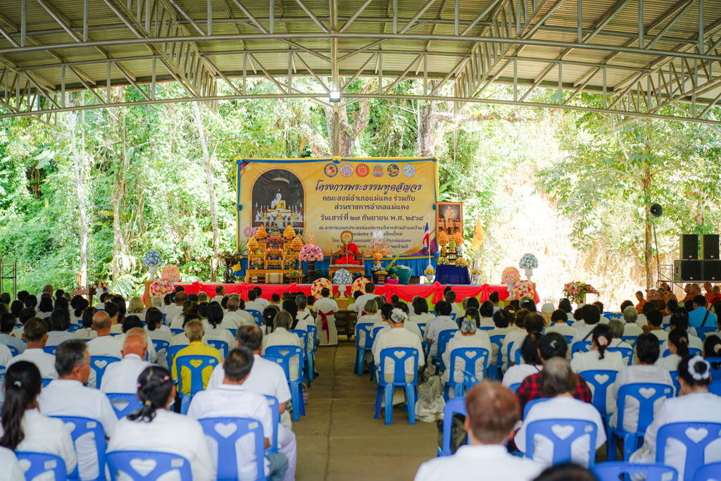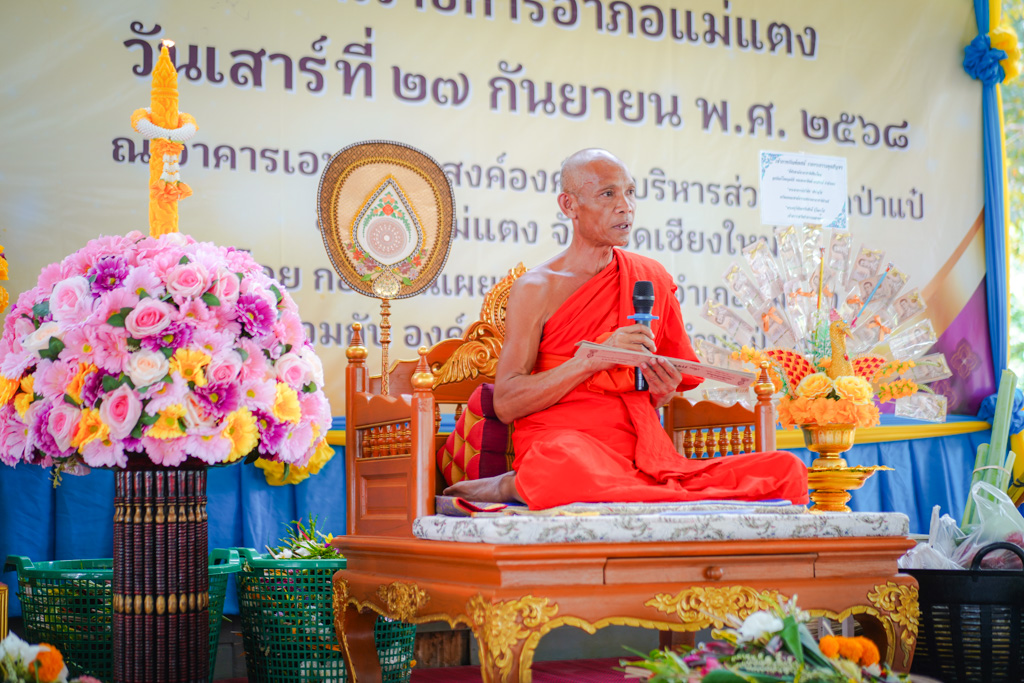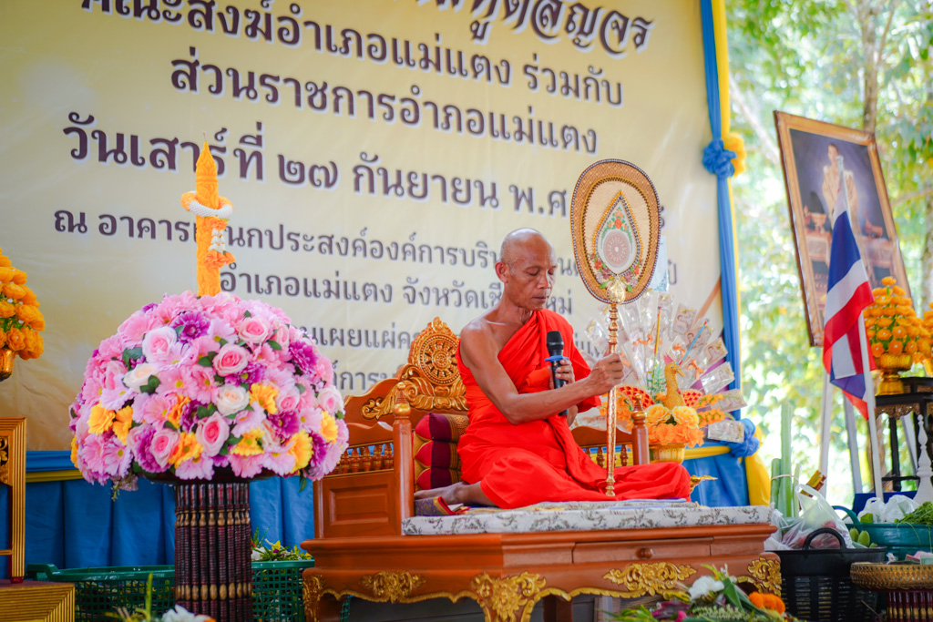 คณะสงฆ์อำเภอแม่แตง พร้อมด้วยหน่วยงานราชการและเหล่าพุทธศรัทธาจำนวนมาก ต่างพร้อมใจมาร่วมรับฟังพระธรรมเทศนา เปี่ยมไปด้วยบรรยากาศแห่งความสงบเย็นและความเลื่อมใสศรัทธา
