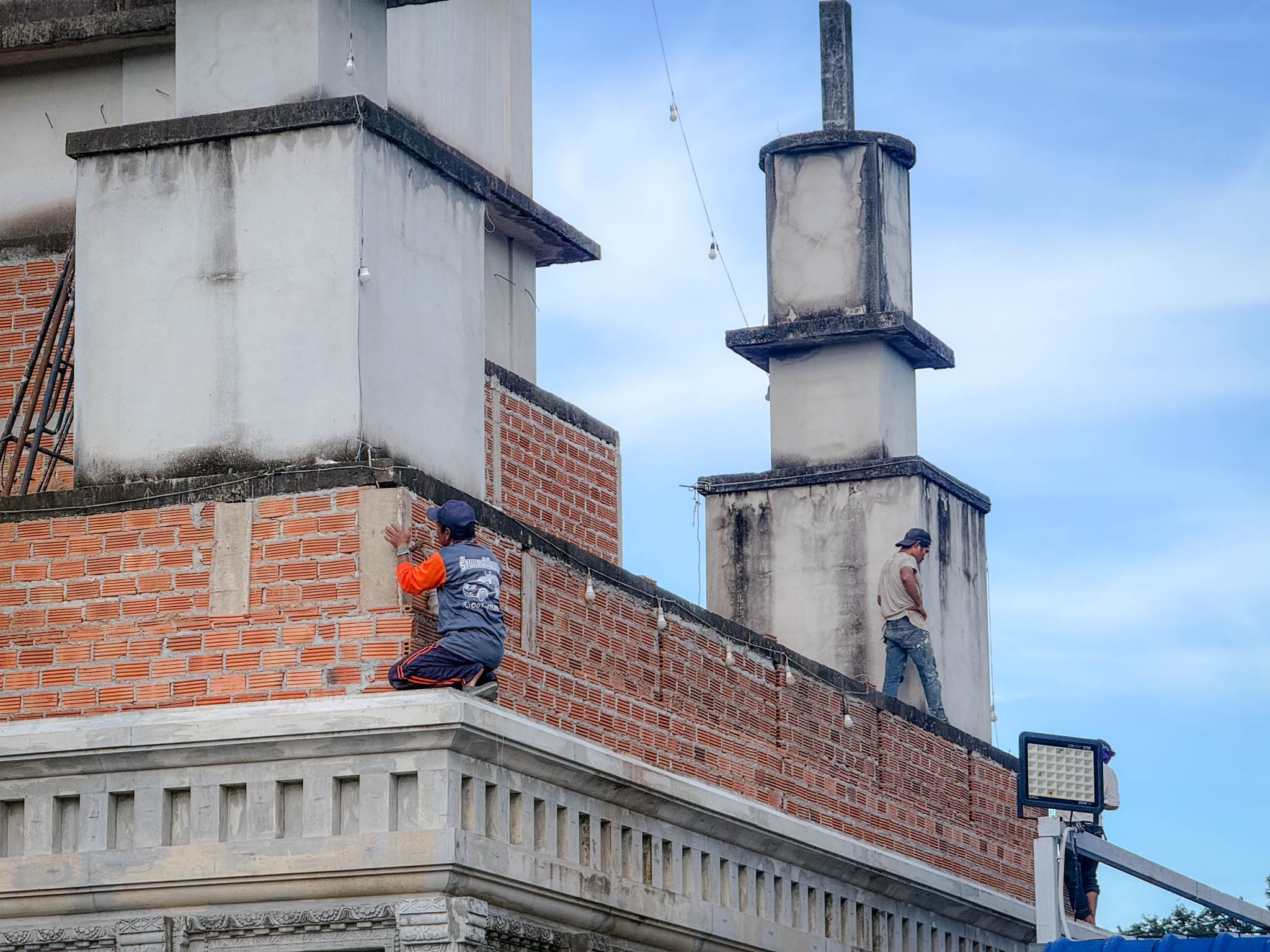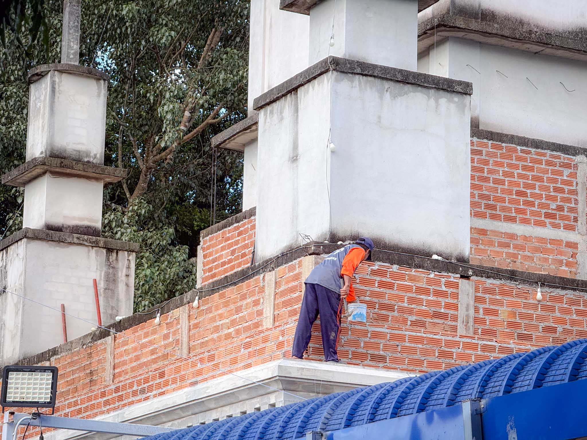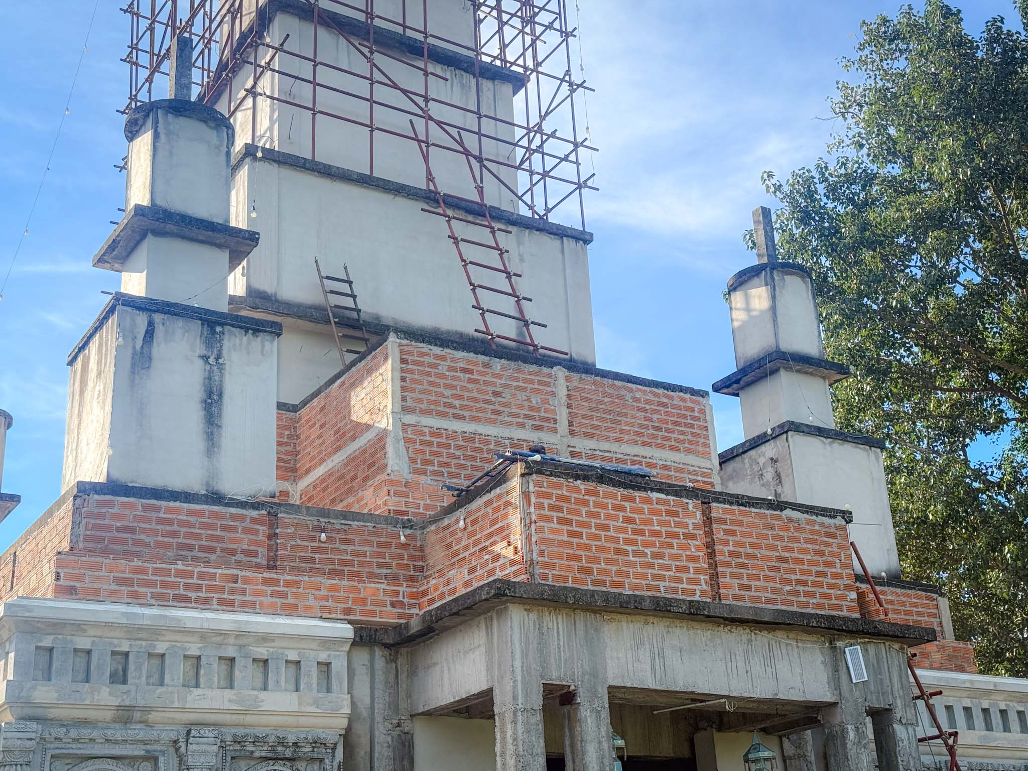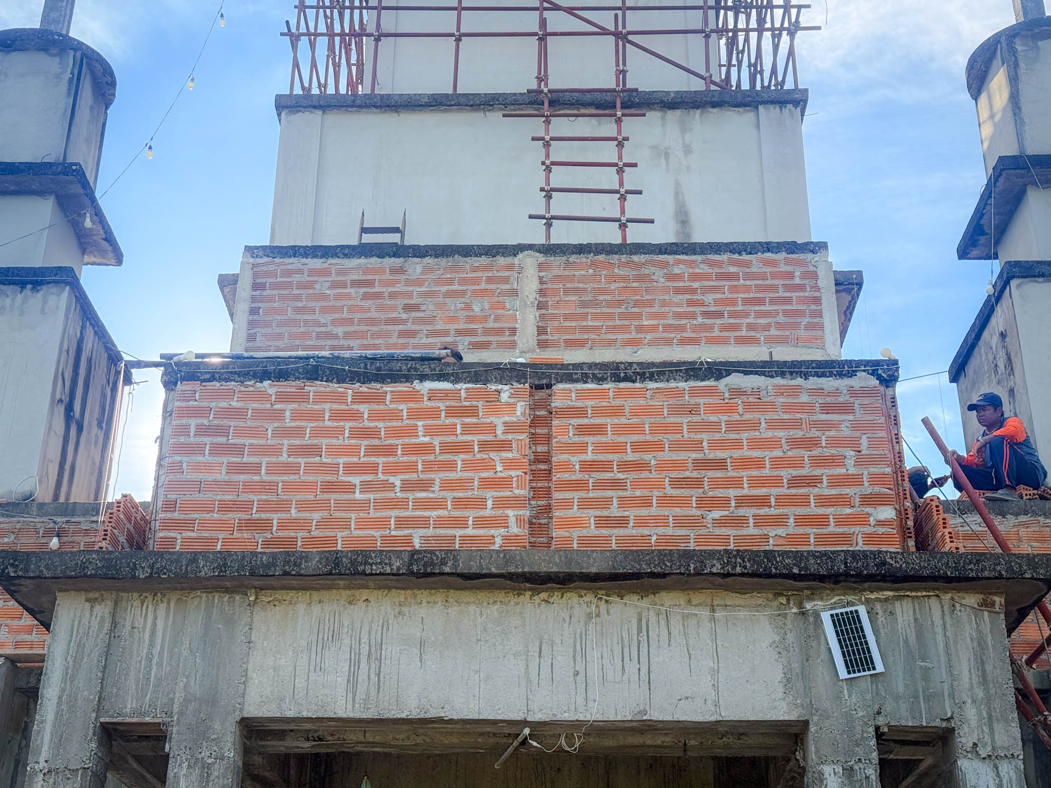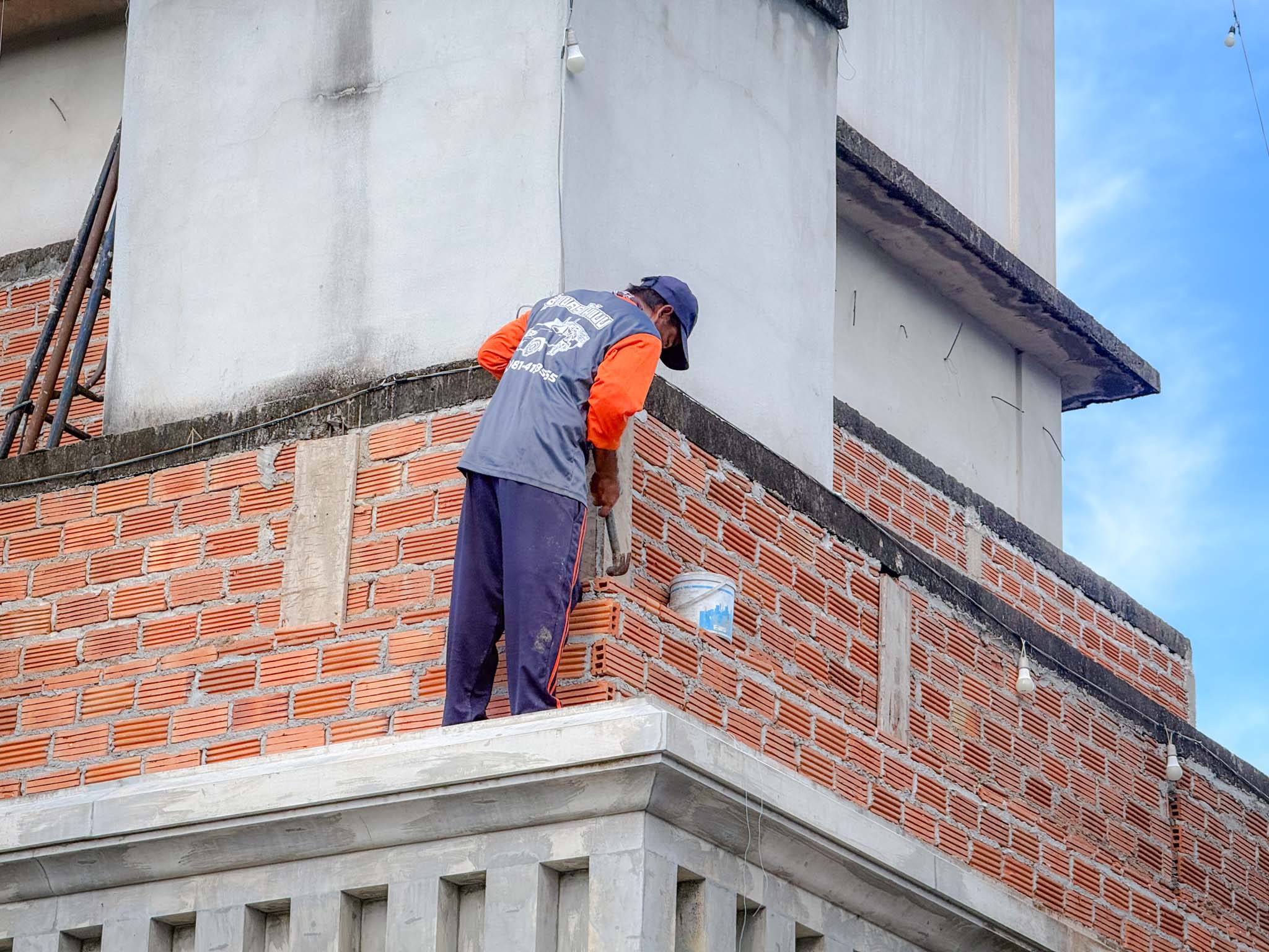 ทีมช่างได้ทำการ ก่ออิฐด้านหน้า เพื่อรองรับ งานสถาปัตยกรรมส่วนต่อ ของอุโบสถ ซึ่งเป็นอีกหนึ่งขั้นตอนสำคัญก่อนเข้าสู่ช่วงตกแต่งซุ้มและองค์ประกอบสถาปัตย์ในลำดับถัดไป ✨