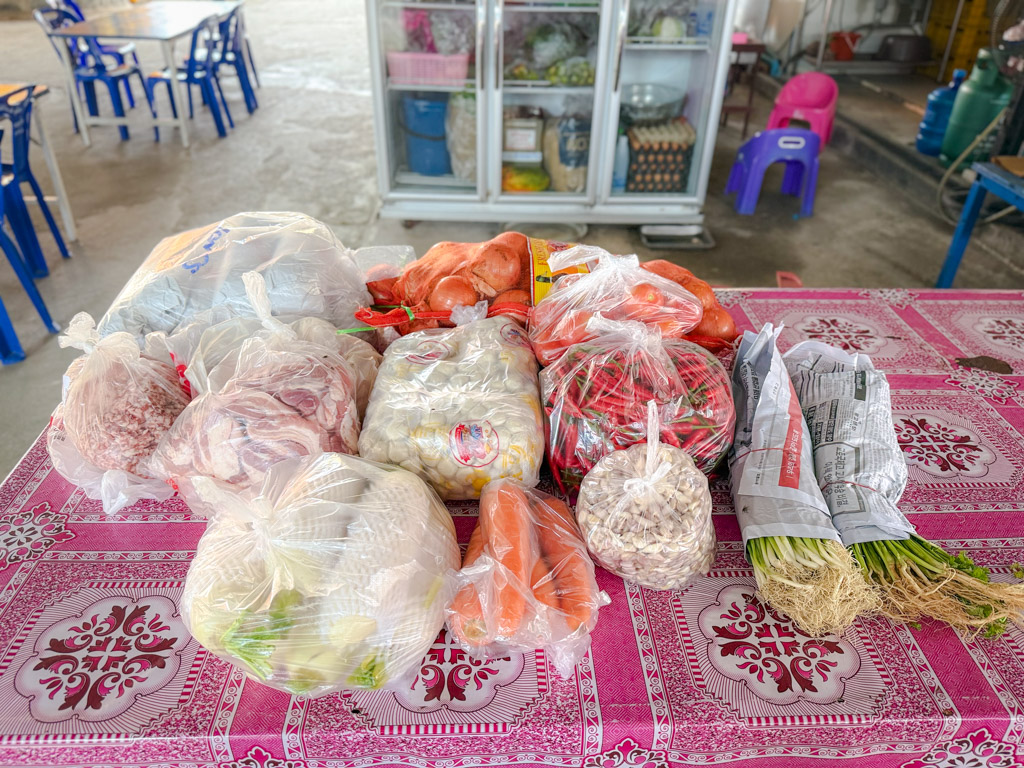 อนุโมทนาบุญเจ้าภาพของสด เนื้อสัตว์ ลูกชิ้น เส้นก๋วยเตี๋ยวถวายเข้าโรงครัวอิ่มบุญปรุงถวายแด่พระภิกษุสงฆ์วัดหนองก๋าย