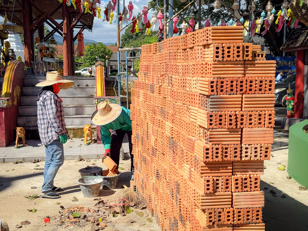 ✨ ภาพแห่งความคืบหน้า! ทีมช่างเข้ามาก่ออิฐเพิ่มเติม เพื่อเตรียมรองรับงานสถาปัตยกรรมชิ้นสำคัญที่จะติดตั้งต่อไปบนอุโบสถทรงเจดีย์พุทธคยาครับ