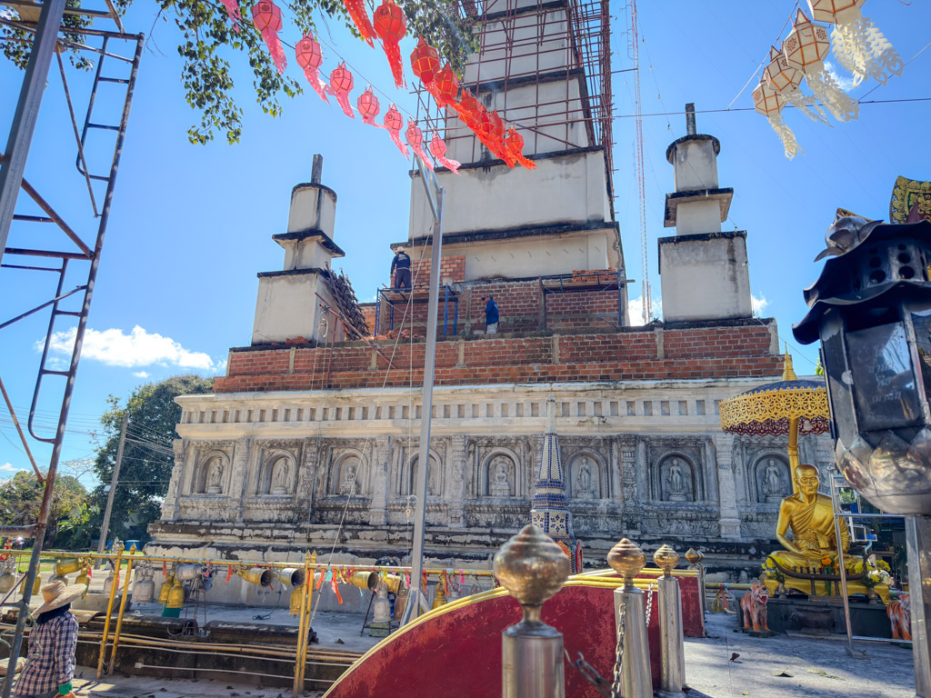 การก่อสร้างล่าสุดของอุโบสถ ทรงเจดีย์พุทธคยา (จำลอง) วัดหนองก๋าย
