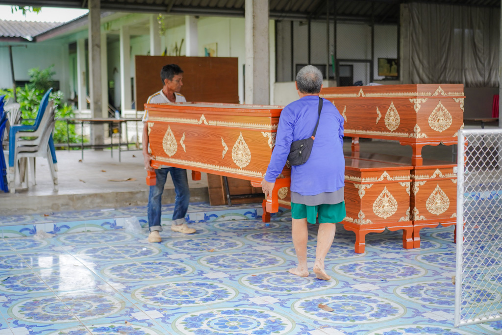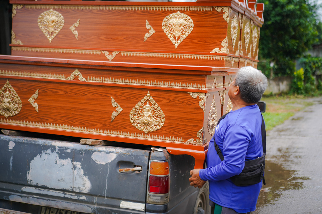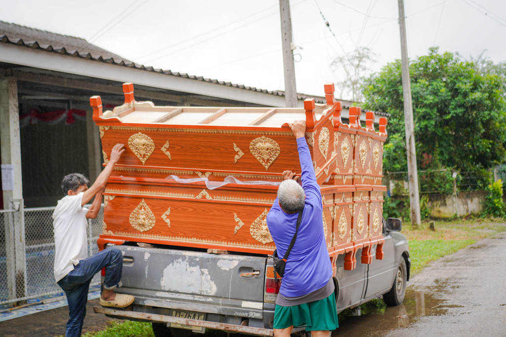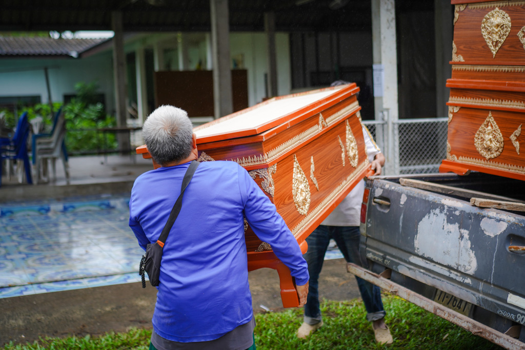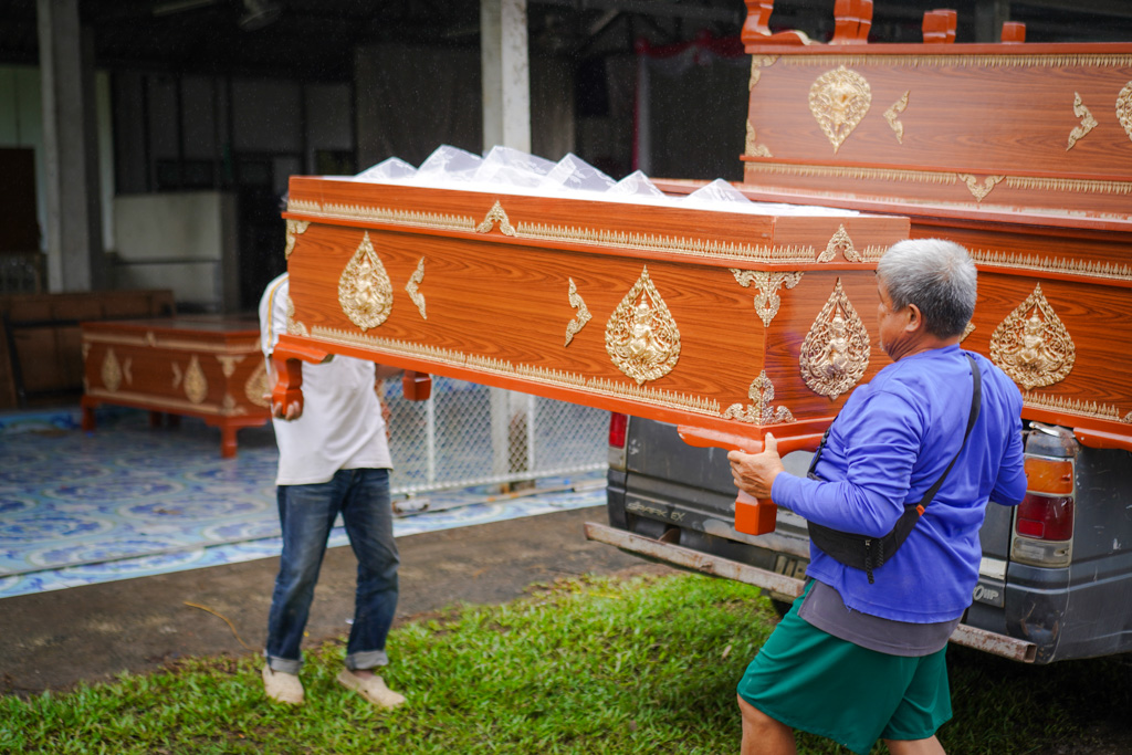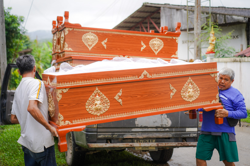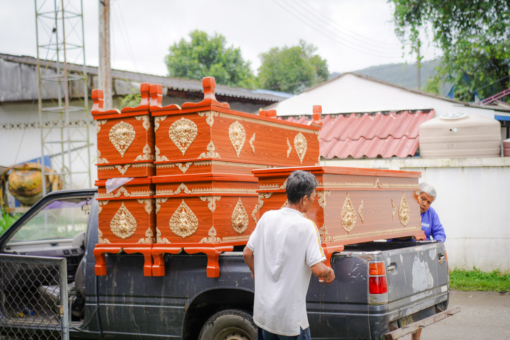 ขณะนี้ โลงศพและผ้าดิบได้ทยอยส่งถึงวัดหนองก๋ายแล้ว