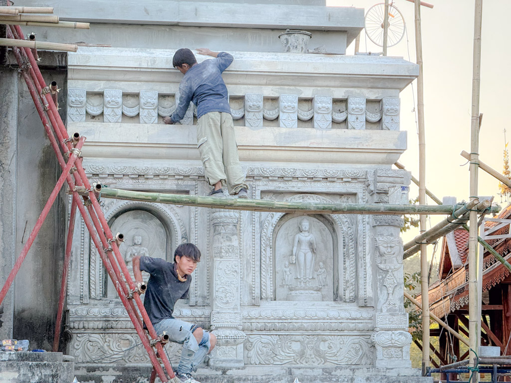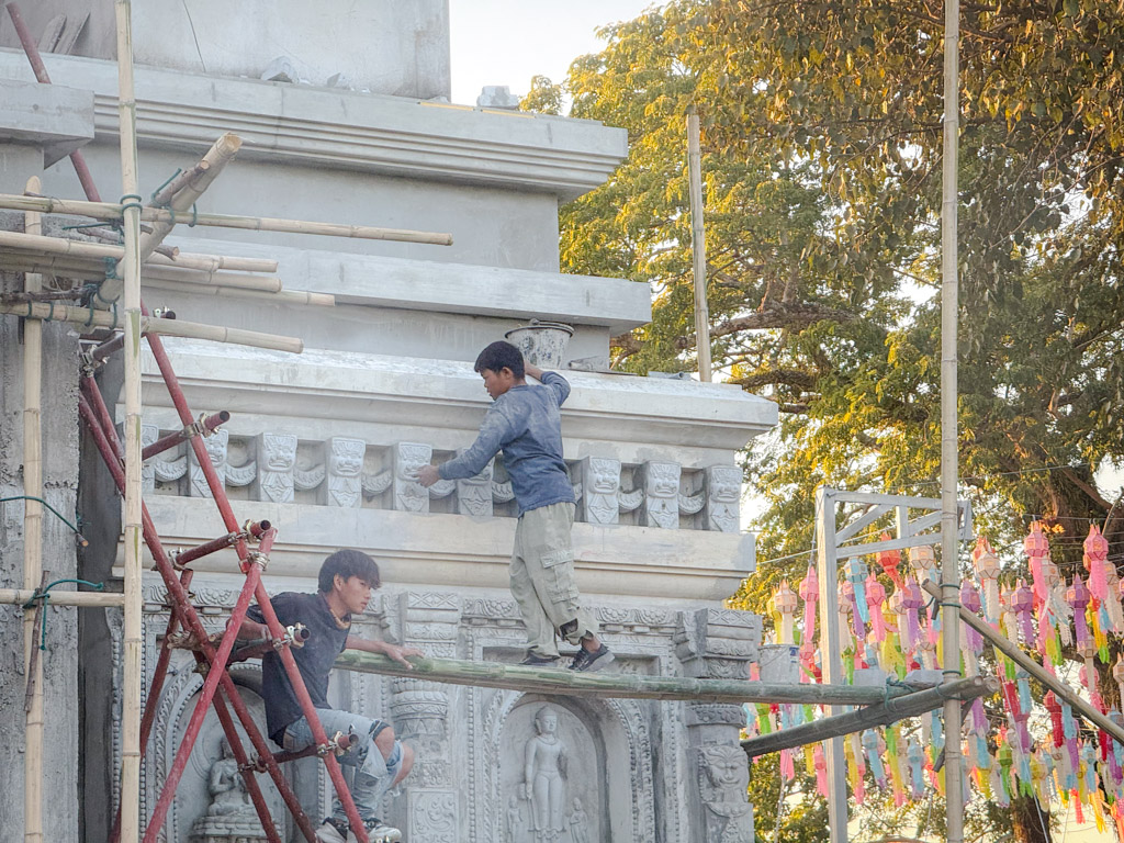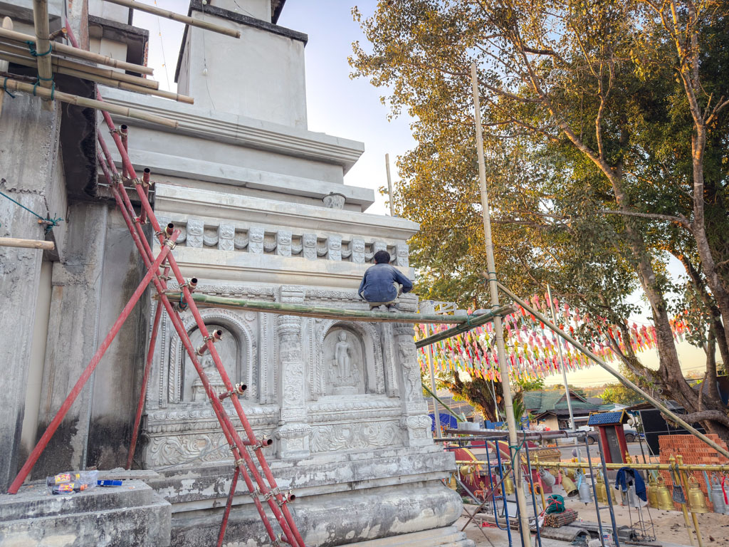 การก่อสร้างอุโบสถทรงเจดีย์พุทธคยา วัดหนองก๋าย