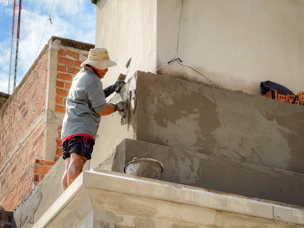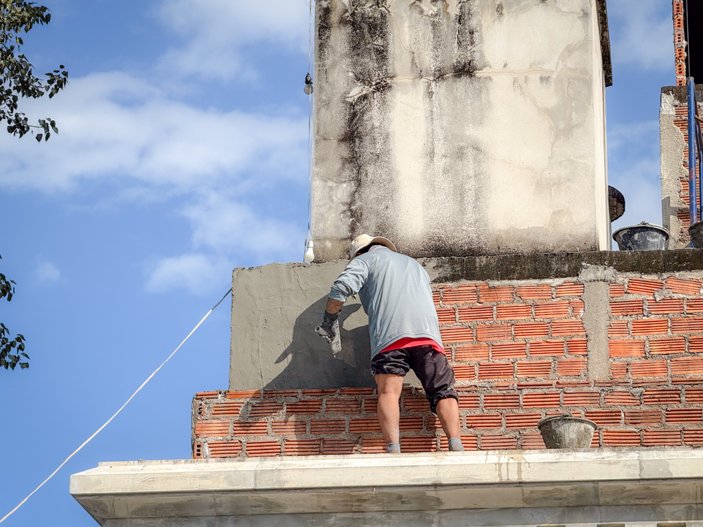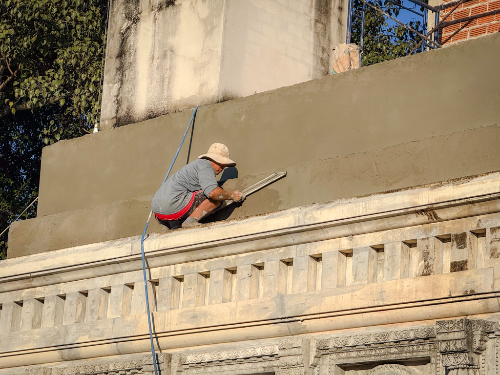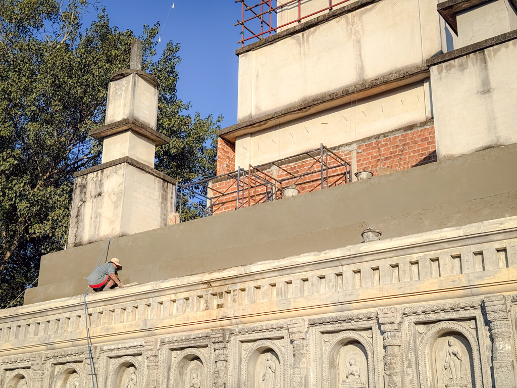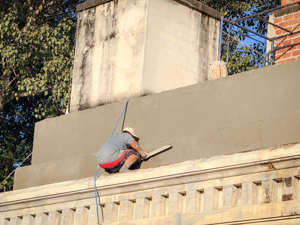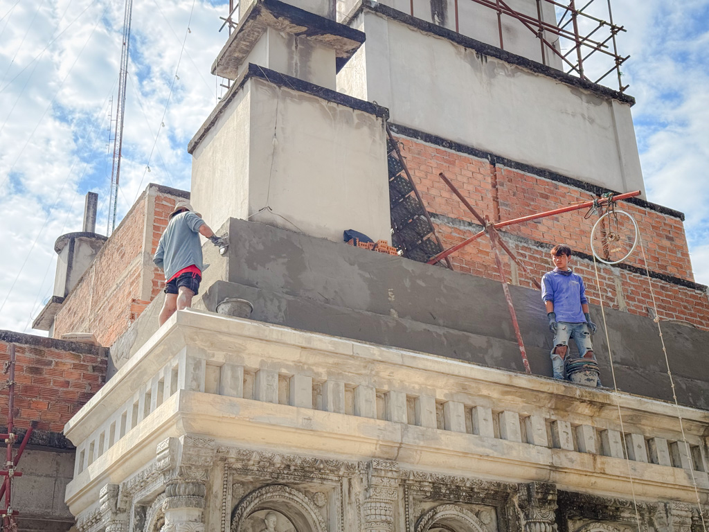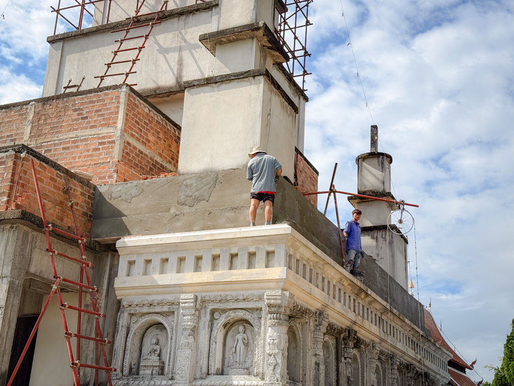 ดำเนินการฉาบปูนในส่วนที่ก่ออิฐไว้ เพื่อรองรับการติดตั้ง งานบัวปูนปั้น ที่ได้จัดส่งมาถึงวัดก่อนหน้านี้