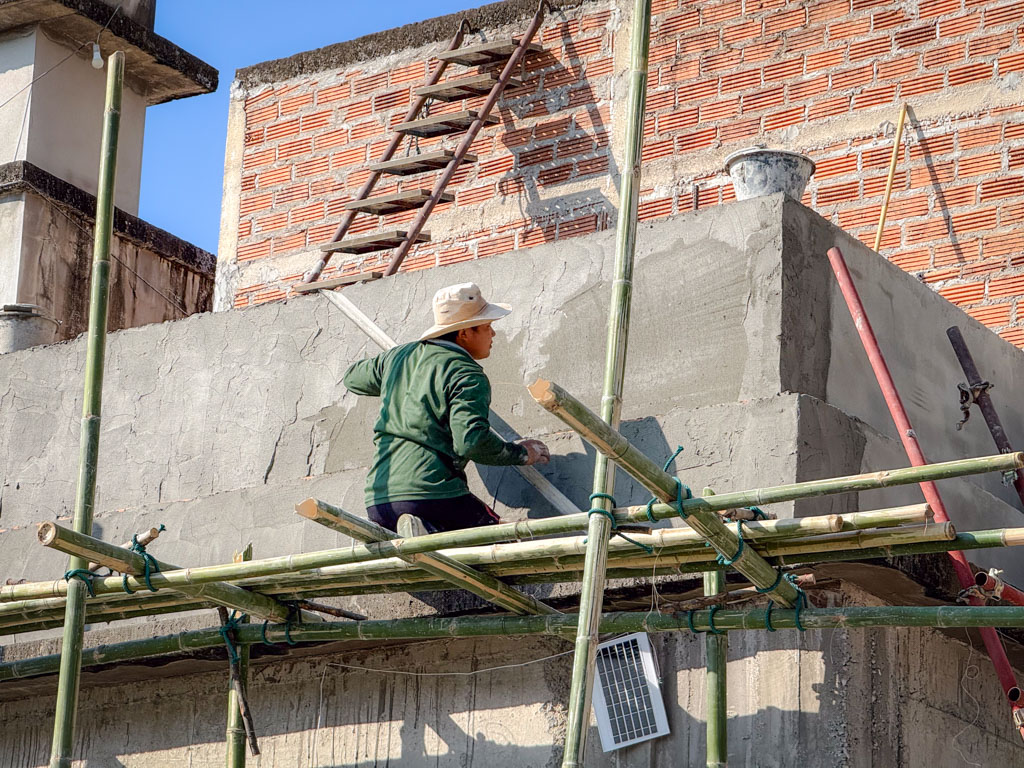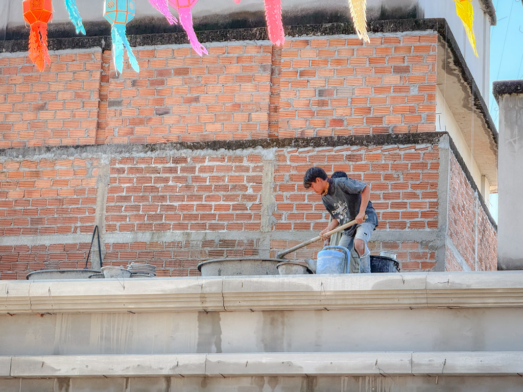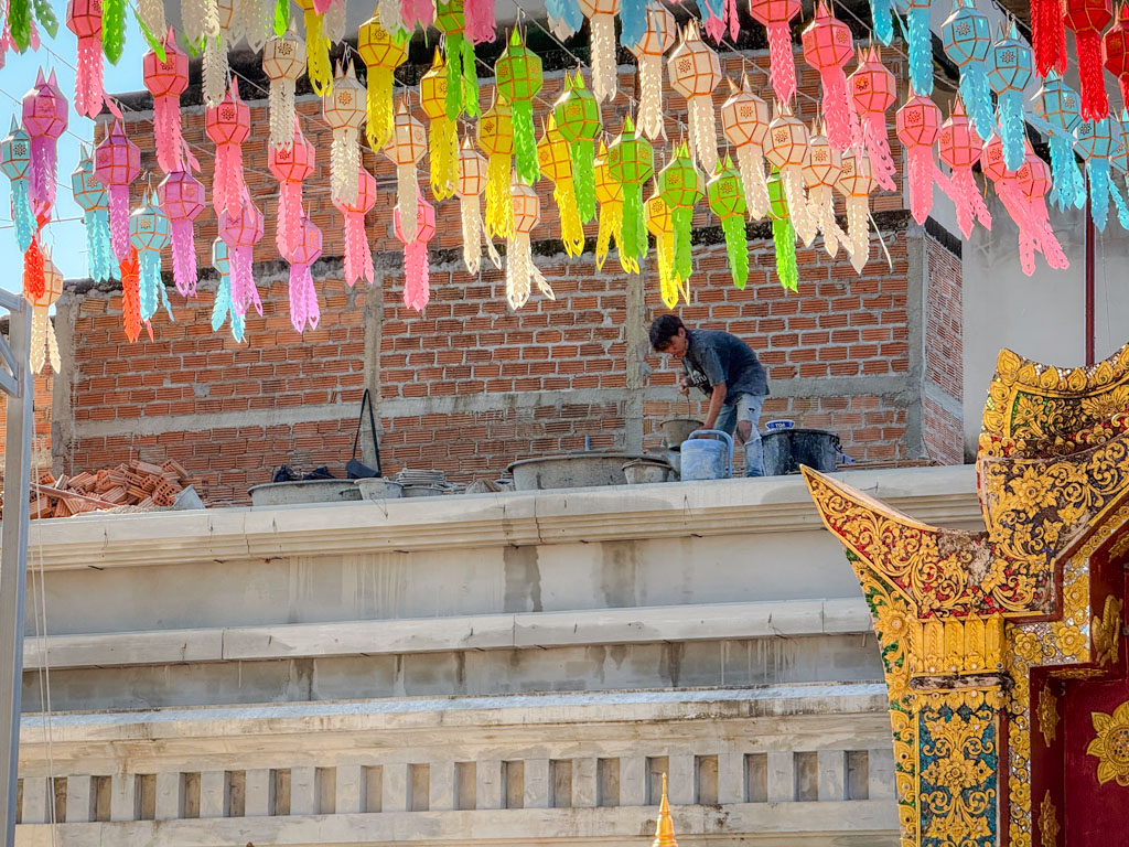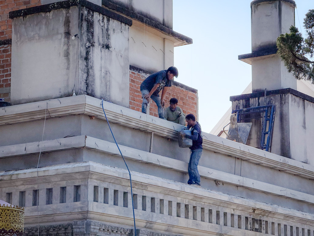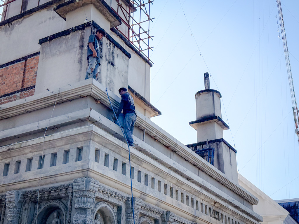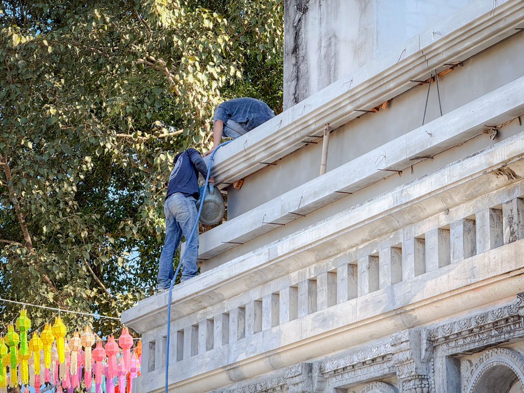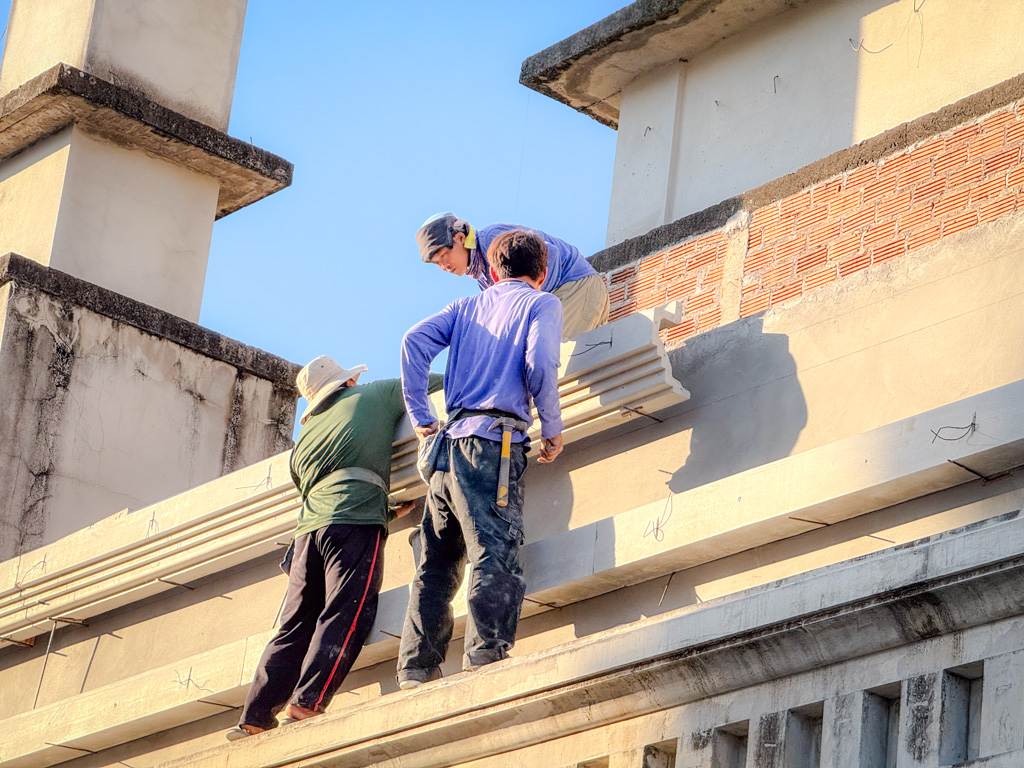 ทีมช่างดำเนินการ ติดตั้งบัว เทปูนคานรองรับบัว