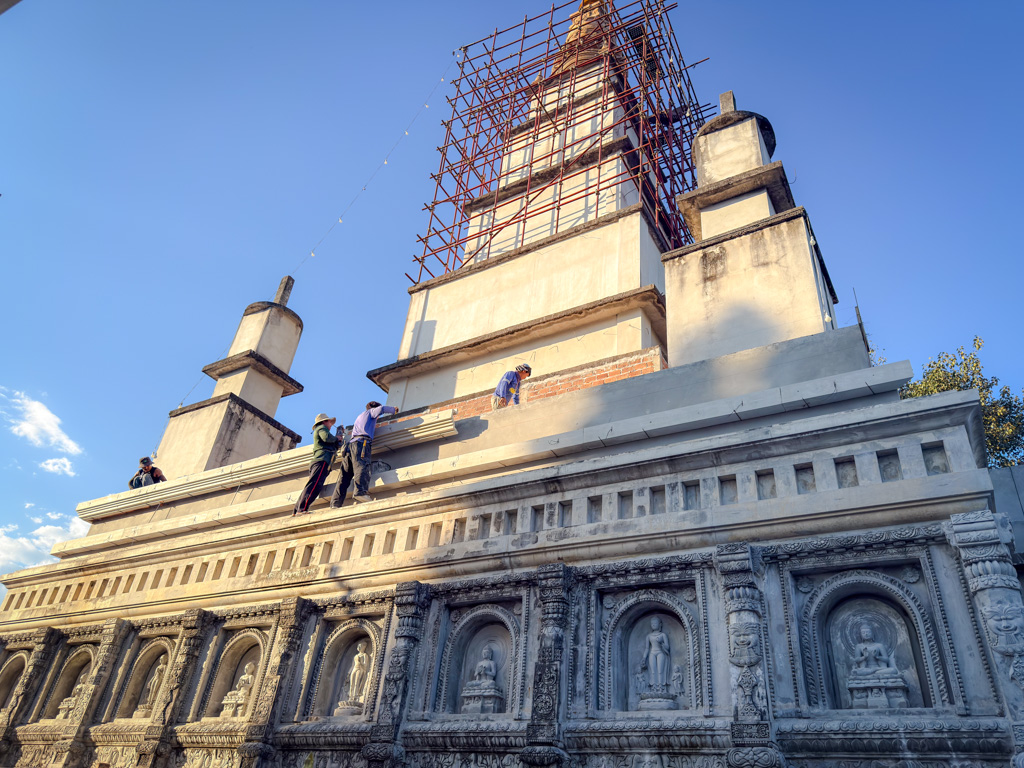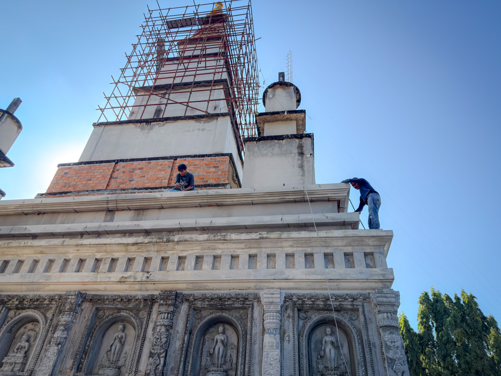การก่อสร้างอุโบสถทรงเจดีย์พุทธคยา วัดหนองก๋าย
