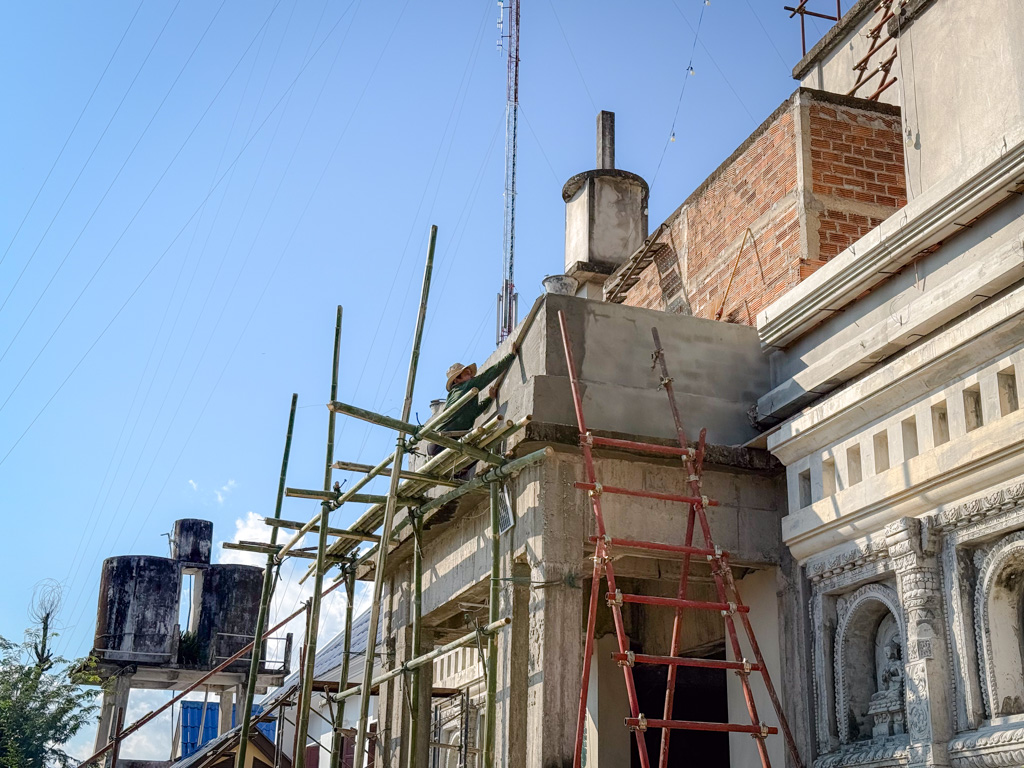 การก่อสร้างล่าสุดของอุโบสถ ทรงเจดีย์พุทธคยา (จำลอง) วัดหนองก๋าย