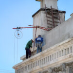 ทีมช่างดำเนินการ ติดตั้งบัว เทปูนคานรองรับบัว