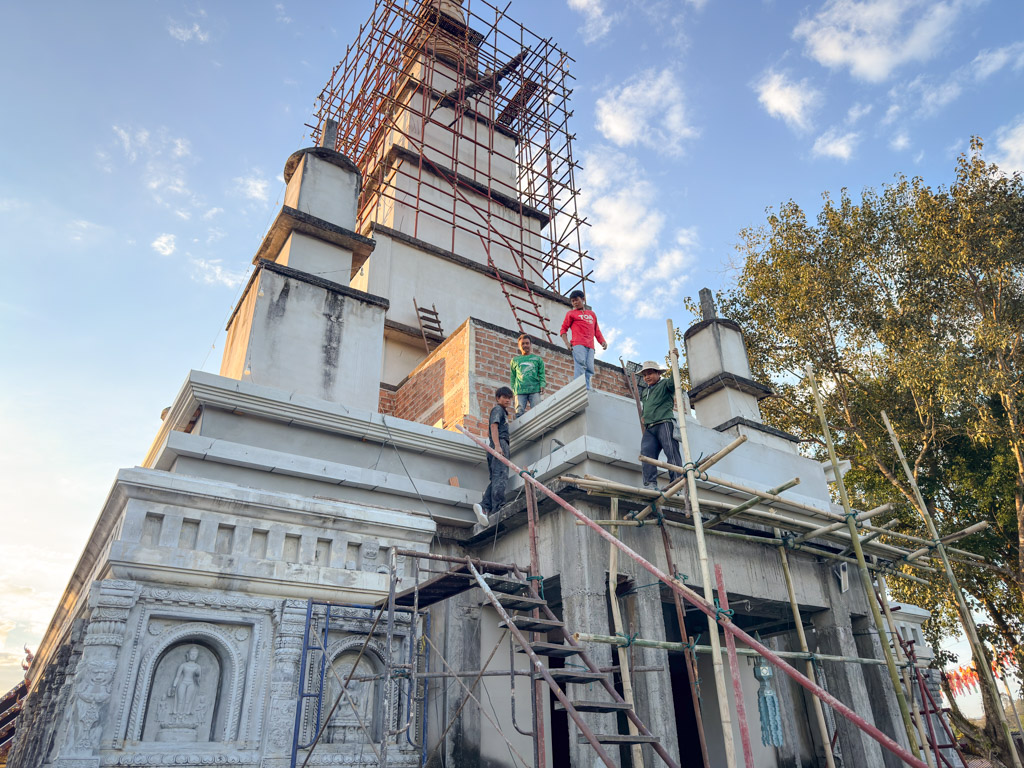 การก่อสร้างล่าสุดของอุโบสถ ทรงเจดีย์พุทธคยา (จำลอง) วัดหนองก๋าย