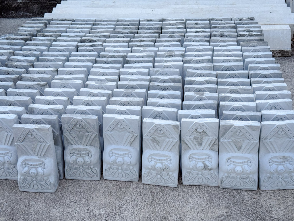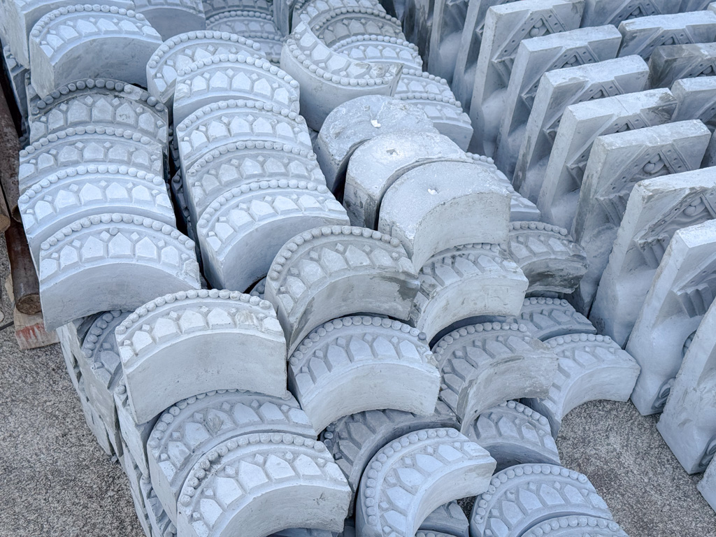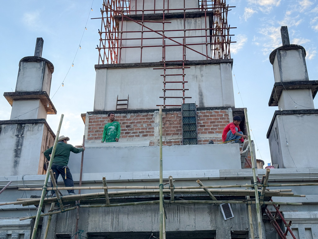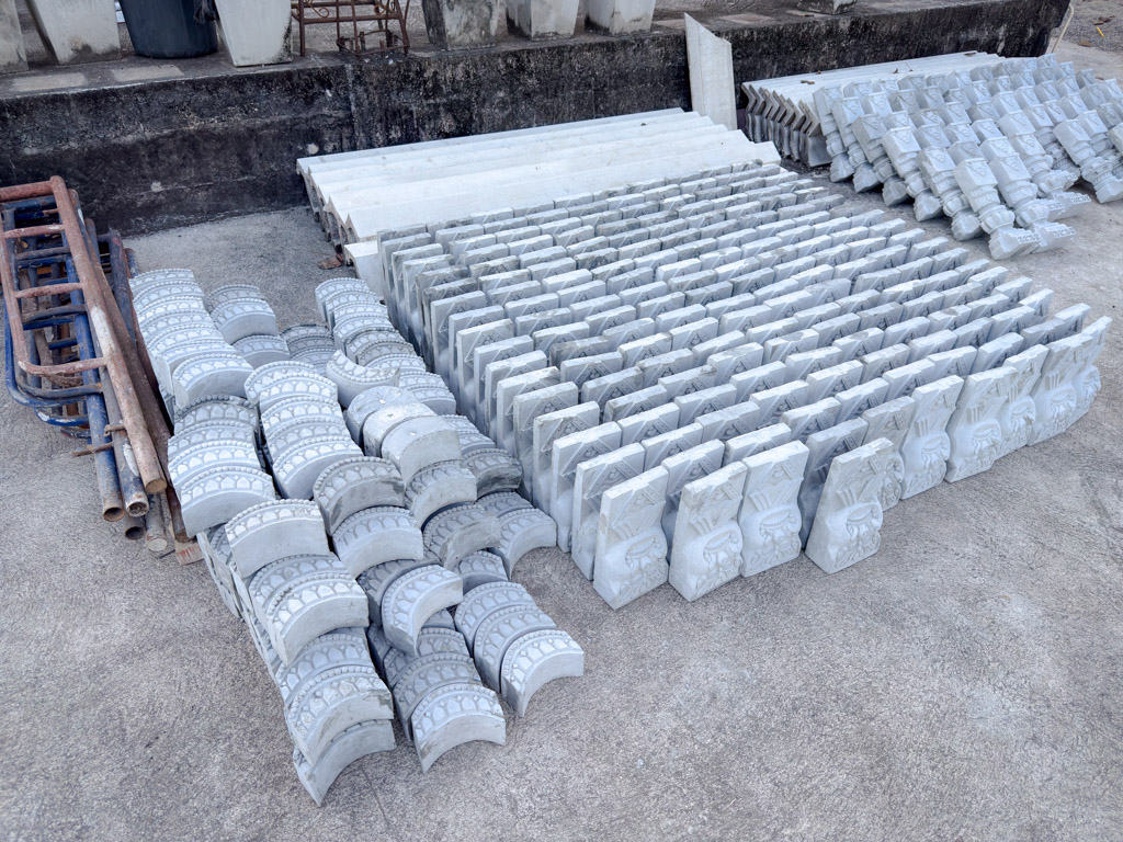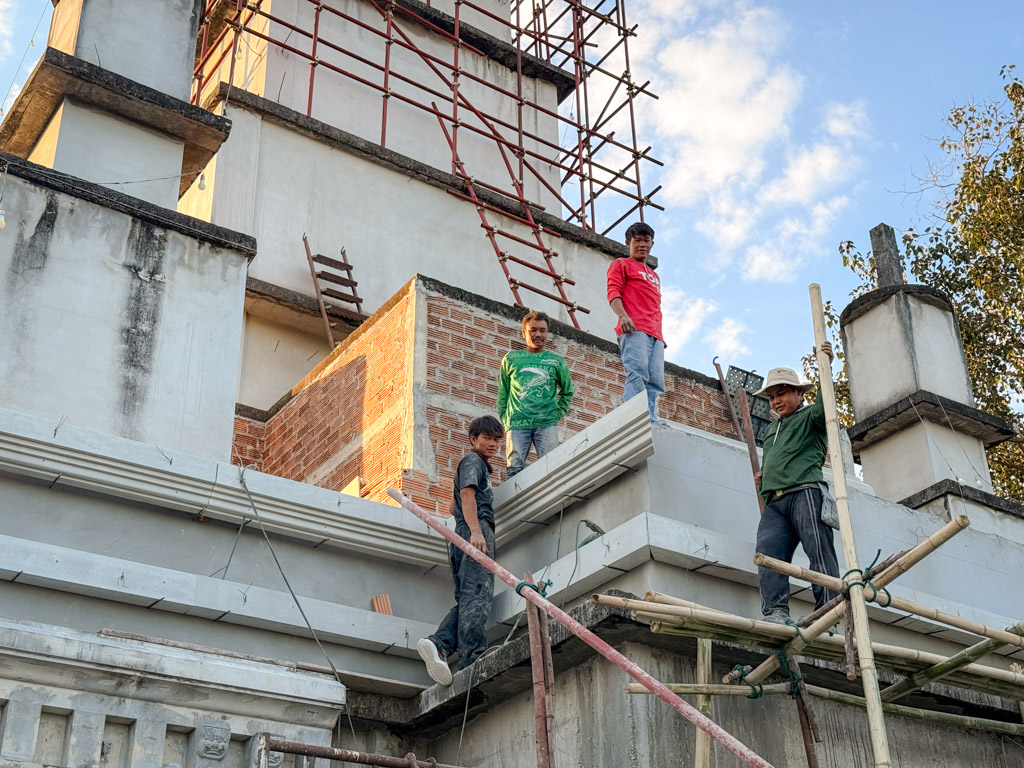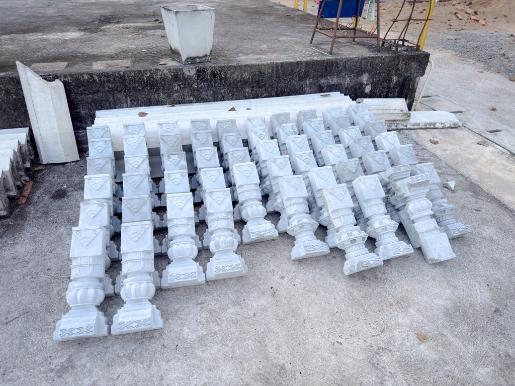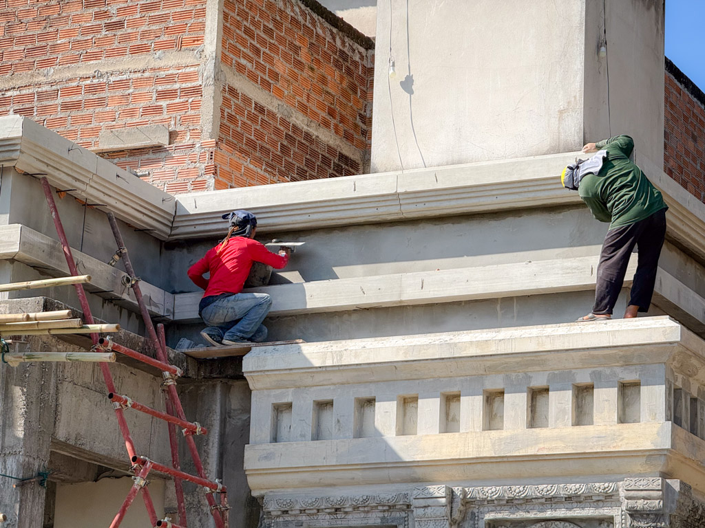 ทีมช่างดำเนินการ ติดตั้งบัว เทปูนคานรองรับบัว